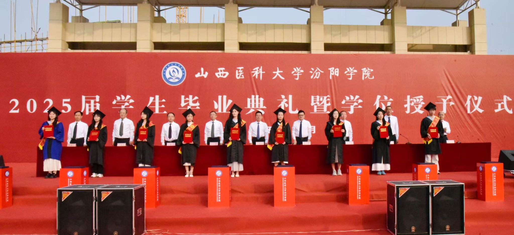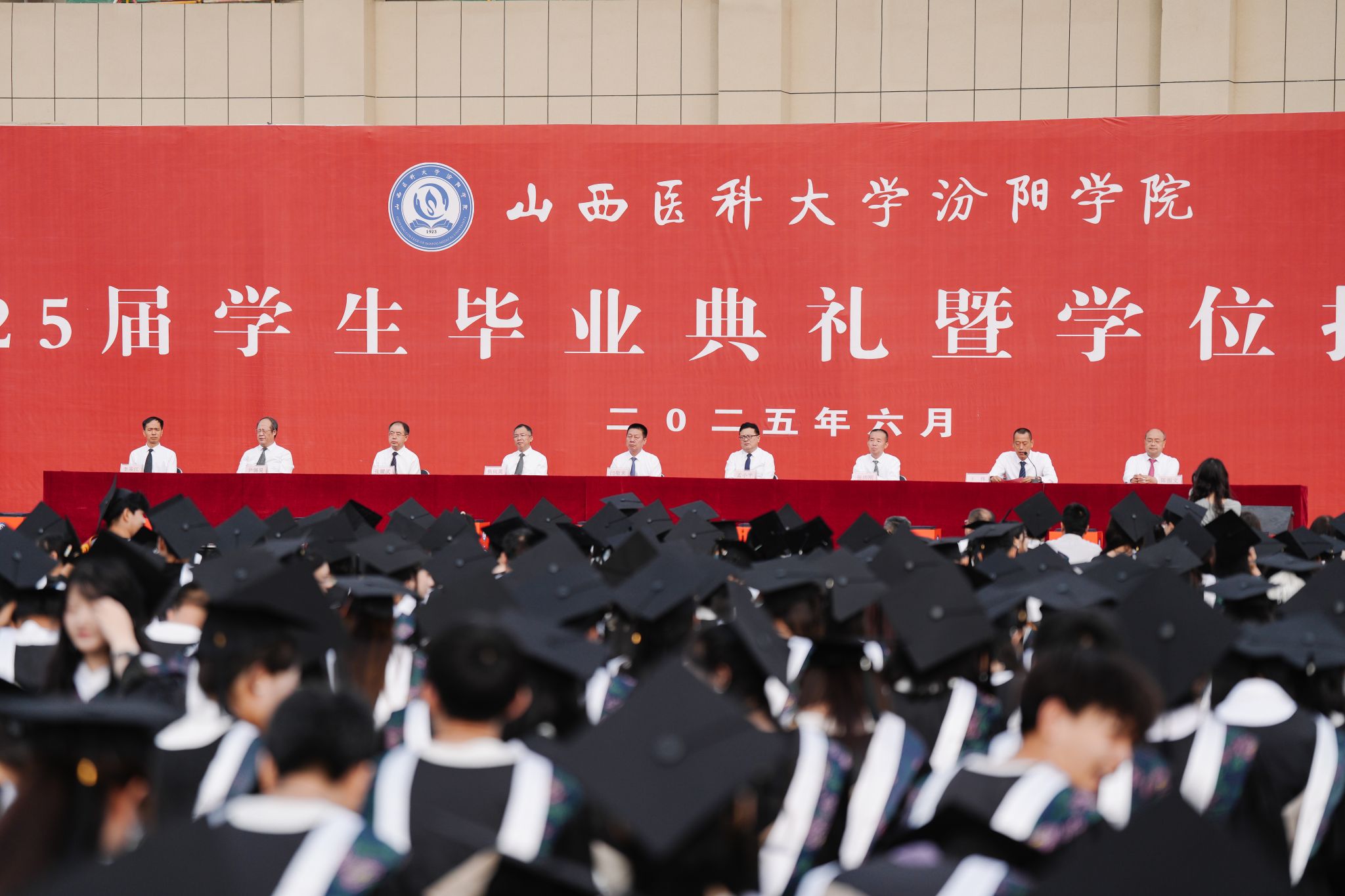 6月27日上午,我校隆重举行2025届毕业生毕业典礼暨学位授予仪式。山西医科大学党委常委、副校长焦向英;我校党委书记闫敬来,党委副书记、院长孟小平,党委副书记王伟,党委委员、纪委书记尹锡昊,党委委员、副院长陈振文,党委委员、副院长李荣江;山西省汾阳医院党委书记张沛刚、院长张耀武;我校相关职能部门负责人,各系(部)书记、主任、副书记、分团委书记,各毕业班辅导员、学业导师、教师代表、毕业生家长及2025届全体毕业生参加了毕业典礼。