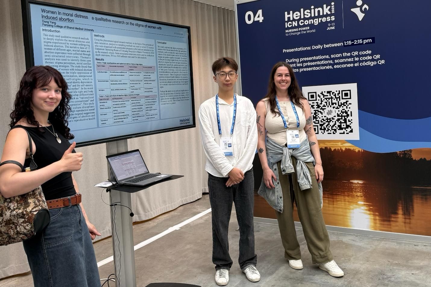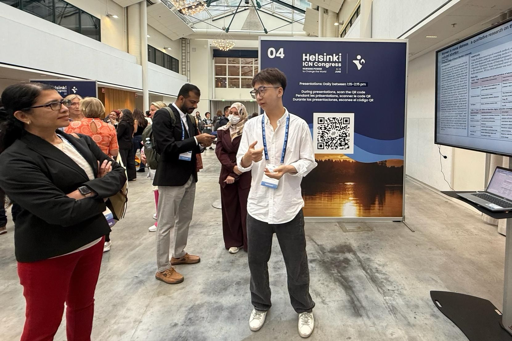 6月8日,杨栋同学参加了国际护士会学生会议论坛,与全球300余名护理专业学生及青年护士就护理教育与实践展开深入交流。在大会壁报展示环节,他围绕自己的两项创新性研究——《审查护理中的性别角色、关系和观点——对全面实践权威和全球卫生优先事项的影响》(Reviewing gender roles, relations, and perspectives in nursing – implications for fully practice authority and global health priorities)及《道德困境中的女性:人工流产女性病耻感的质性研究》(Women in moral distress:a qualitative research on the stigma of women with induced abortion)进行了专题汇报。其研究内容聚焦护理实践中的社会性别议题与人文关怀,引发了与会者的广泛关注,多国代表驻足探讨交流。