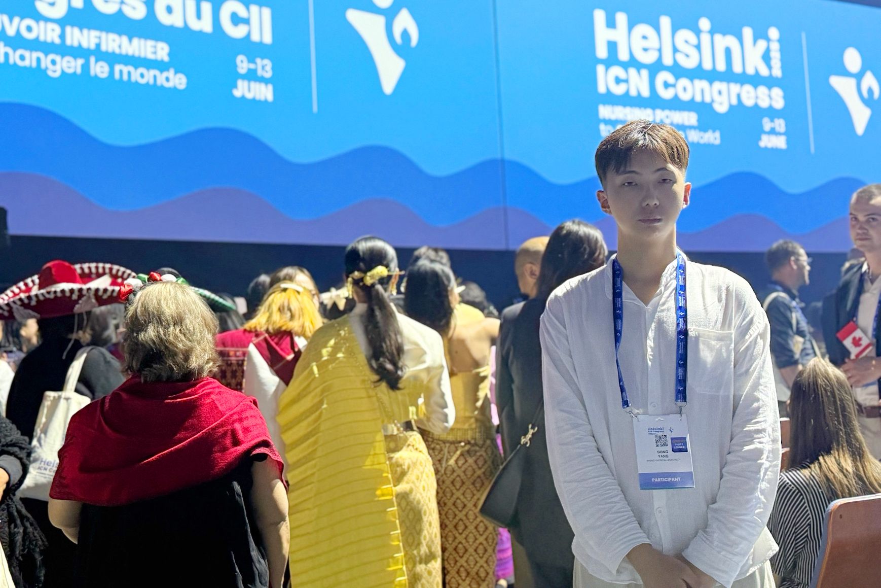 6月8日至13日,第30届国际护士会(ICN)大会在芬兰赫尔辛基隆重召开,本届大会以“护理力量改变世界”为主题,吸引了来自140多个国家和地区的7000余名护理专家、学者参会。我校护理学系助产学专业192101班杨栋同学应邀参加了此次大会,这也是我校学子第一次登上ICN大会舞台。