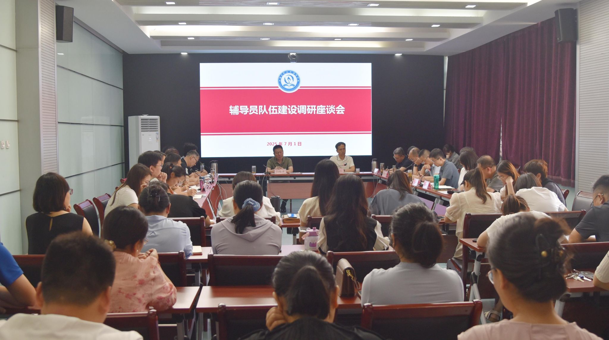 7月1日上午,我校在养正楼九层会议室召开了辅导员队伍建设调研座谈会。校党委书记闫敬来,党委委员、副院长李荣江,学生处、组织部、教务处、人事处、团委等部门负责人,各系(部)副书记、专职辅导员50余人参加座谈交流,李荣江主持座谈会。