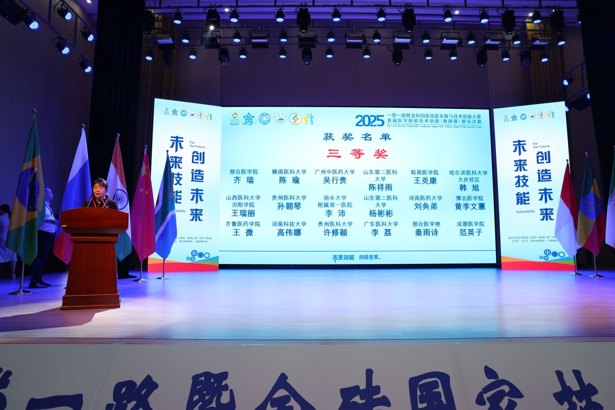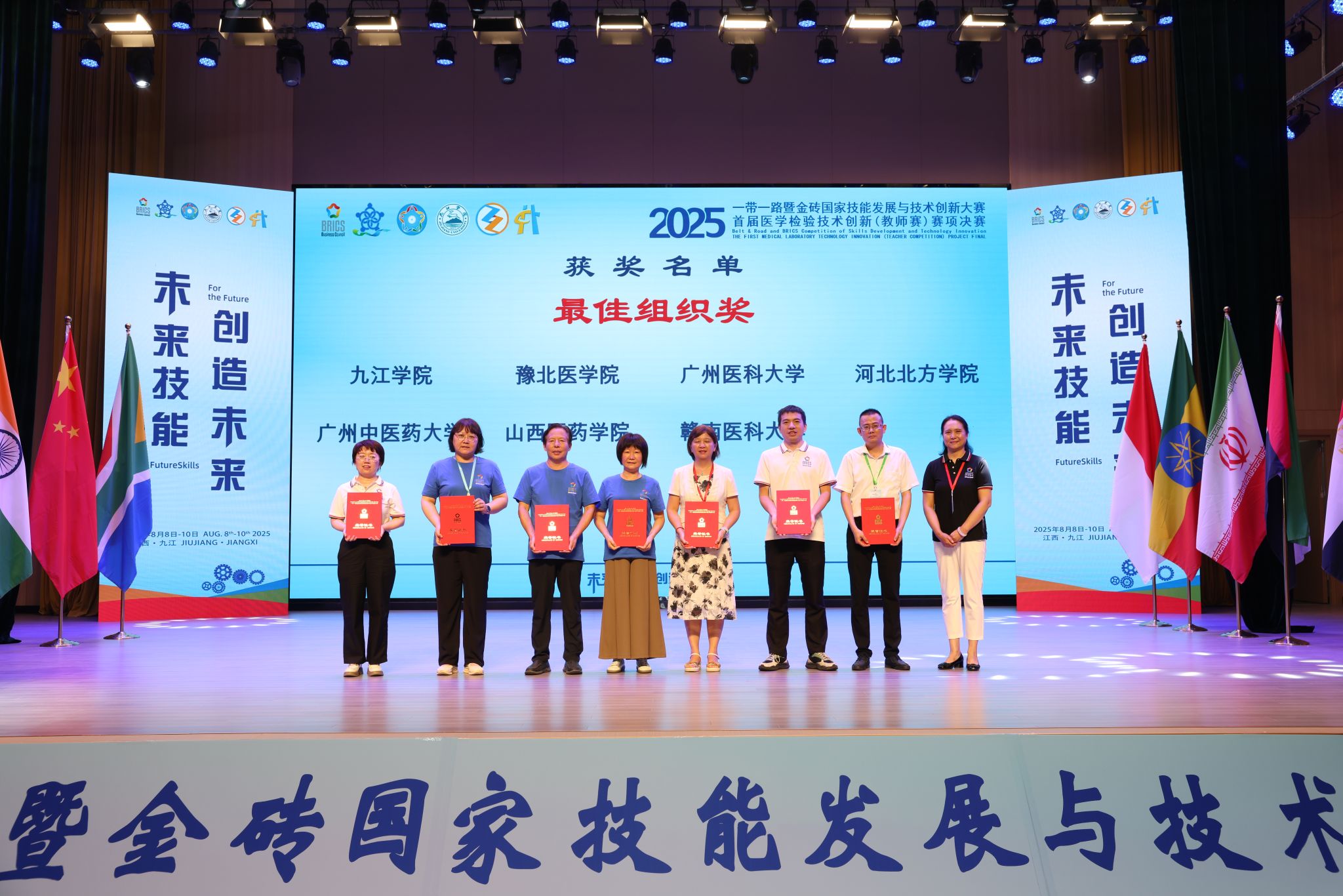 8月8日至10日,“2025一带一路暨金砖国家技能发展与技术创新大赛第二届医学检验技能赛项决赛(本科组)暨首届医学检验技术创新(教师赛)赛项决赛”在江西省九江市举行。由我校医学检验系任吉莲、薛翠娥两位教师指导的72201-8班史佳蓉、王美婷同学获得医学检验技能赛项三等奖(铜牌),医学检验系教师李梦俊老师斩获首届教师技术创新赛项一等奖(金牌)、付慧老师荣获二等奖(银牌)、王瑞丽老师荣获三等奖(铜牌)、赵杨老师荣获优秀奖,我校荣膺“最佳组织奖”和“优秀组织奖”双项殊荣。