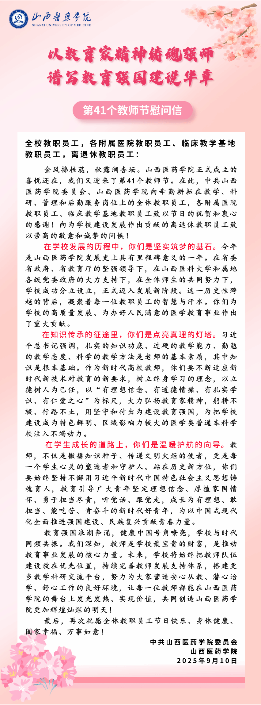 第41个教师节慰问信