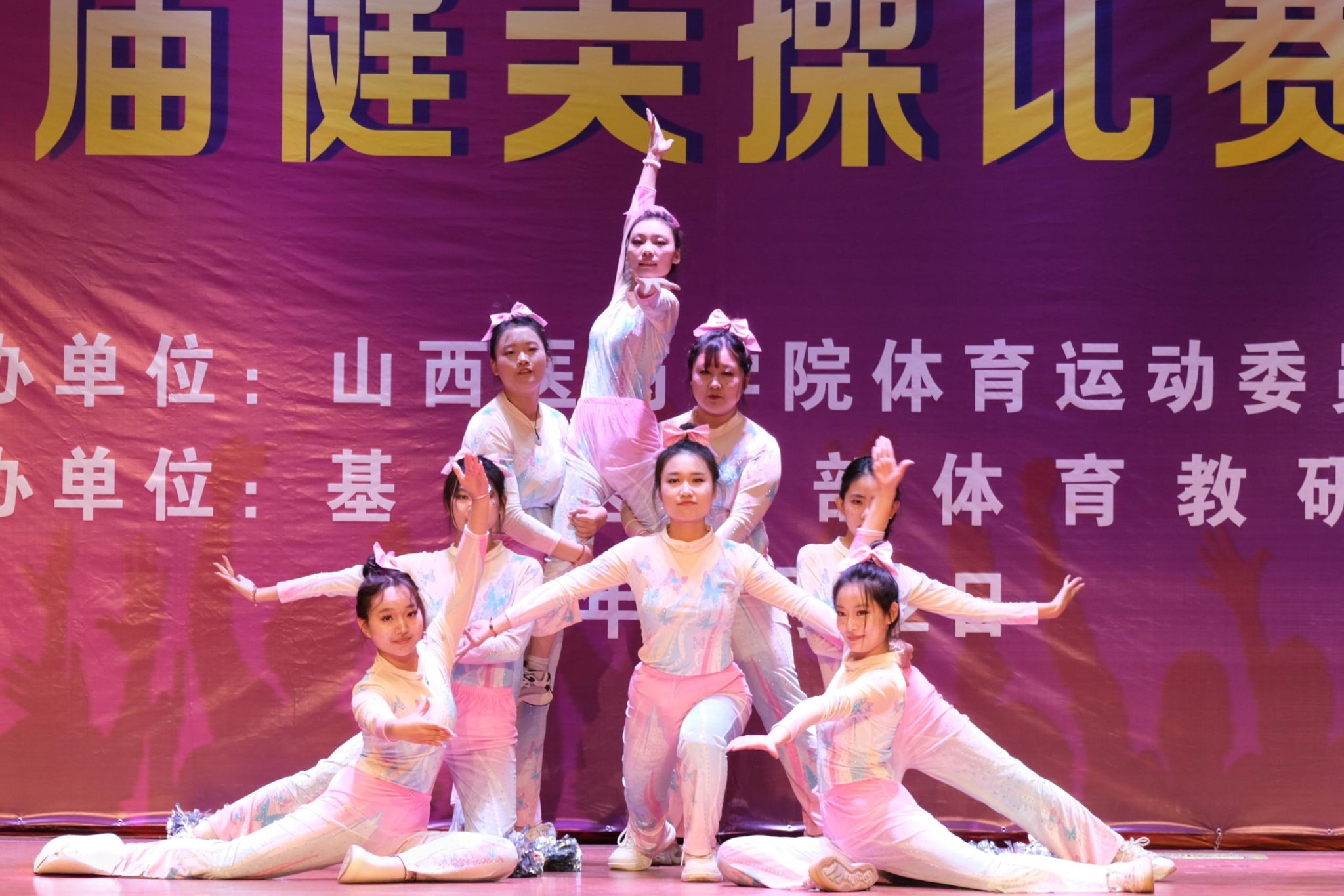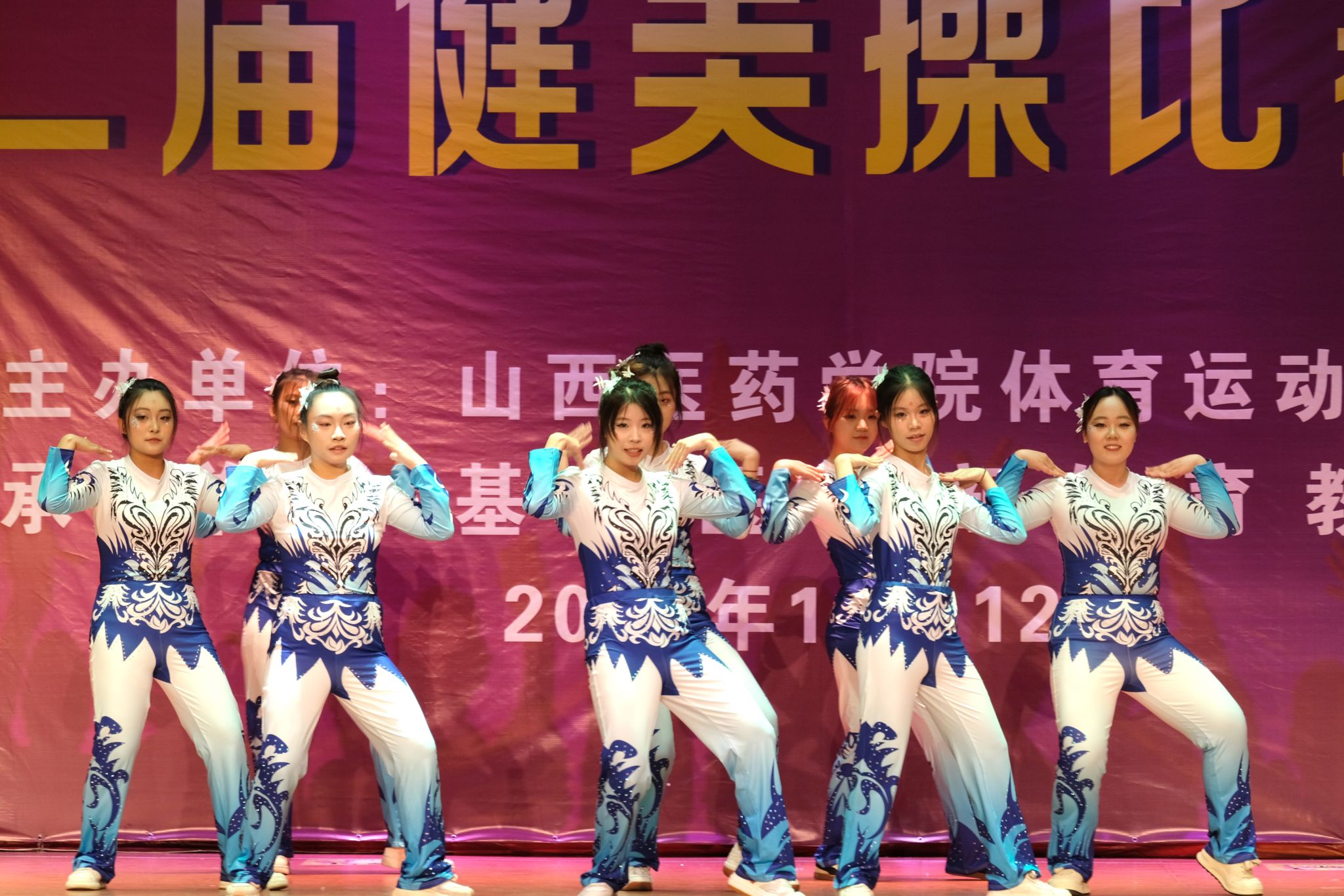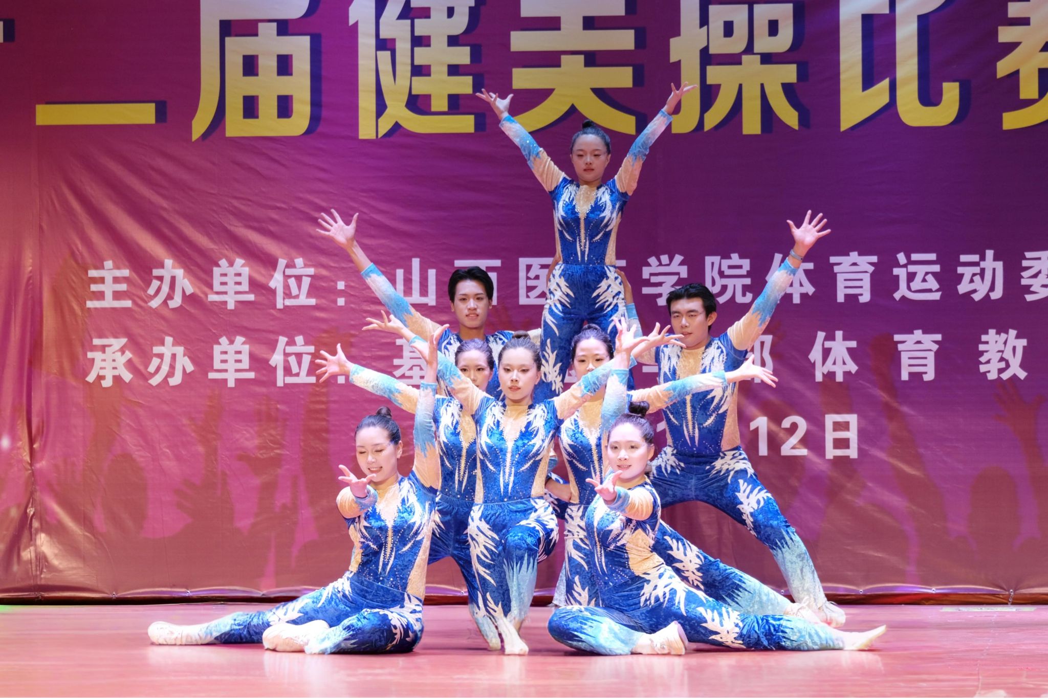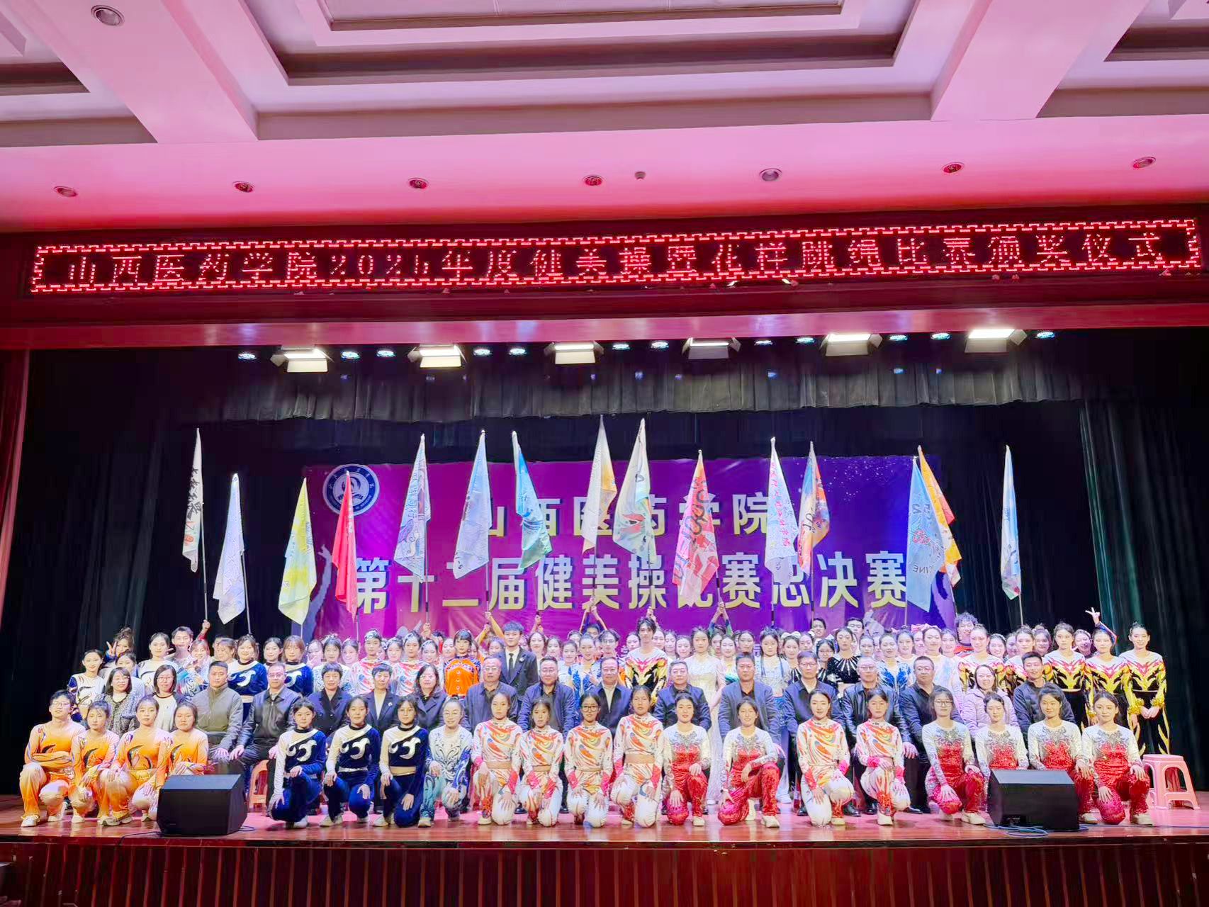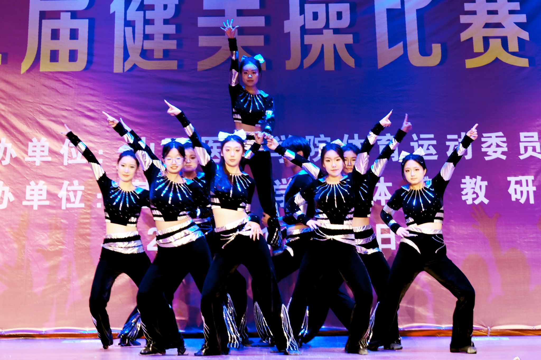 舞动青春,绽放活力。为认真贯彻落实习近平总书记关于加快建设体育强国的重要论述,丰富校园文化生活,展现山医药学子的青春风采与团队协作精神,11月12日,由校体育运动委员会主办、基础医学部体育教研室承办的我校第十二届健美操比赛总决赛在文体活动中心举行。党委副书记王伟,党委委员、副院长杨利军,相关职能部门负责同志及各系部党总支书记、副书记出席决赛,学生处、团委及体育教研室的7位老师共同担任裁判员,参赛班级辅导员、啦啦队为参赛队伍现场助威。