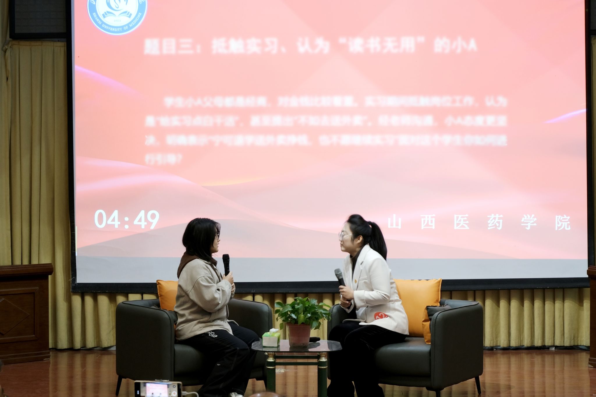 决赛设置谈心谈话与案例研讨两大核心环节,全方位考察辅导员思想政治教育、价值引领及实战综合能力。谈心谈话环节,选手面对学业焦虑、心理困惑、就业指导等情景再现的场景,以制度运用和共情倾听为基础,运用专业方法引导学生化解矛盾,展现“知心朋友”的温度与智慧;案例研讨环节,参赛选手以“我提问,你回答”的方式围绕案例,深入剖析、精准阐述,提出系统性解决方案,体现“人生导师”的专业素养与应急处置能力。