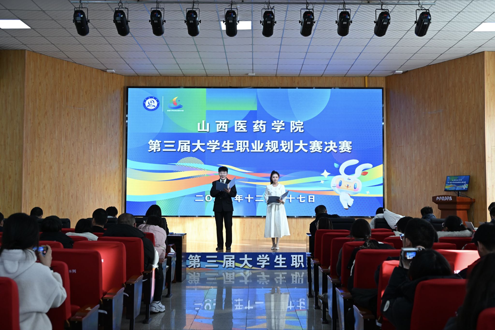 12月27日,我校举行了以“筑梦青春志在四方,规划启航职引未来”为主题的第三届大学生职业规划大赛决赛,特邀中北大学刘宝华、山西财经大学陈霞、中北大学李红霞、山西医科大学王凌、山西中医药大学孟喆等省内多所高校资深专家组成评审团,各系部党总支书记、副书记出席决赛现场。