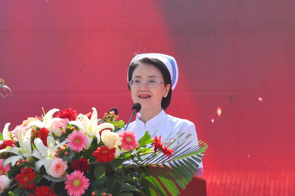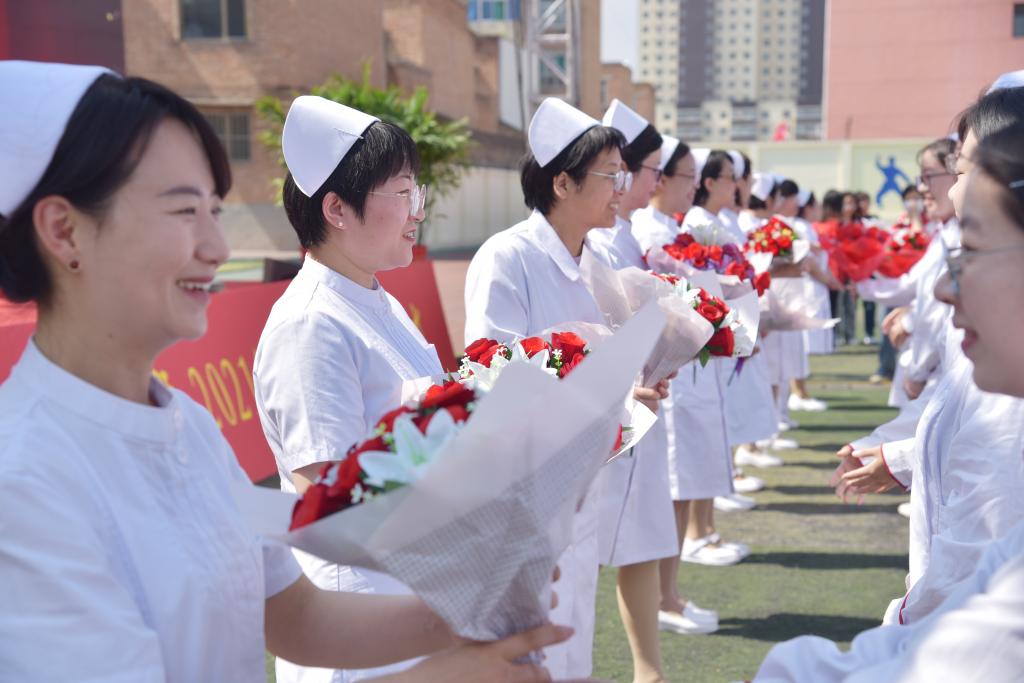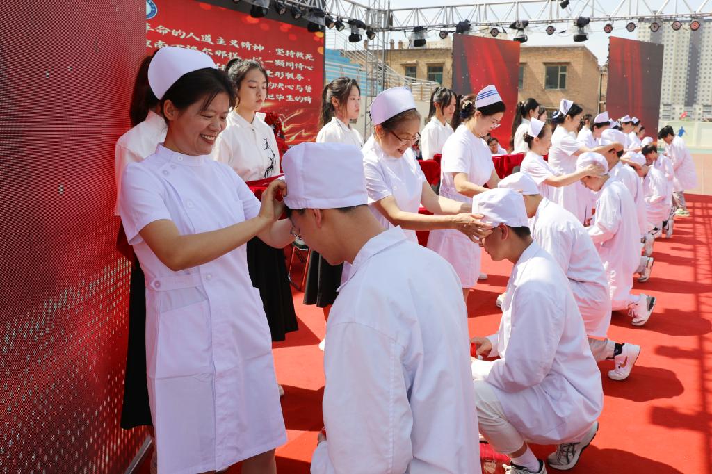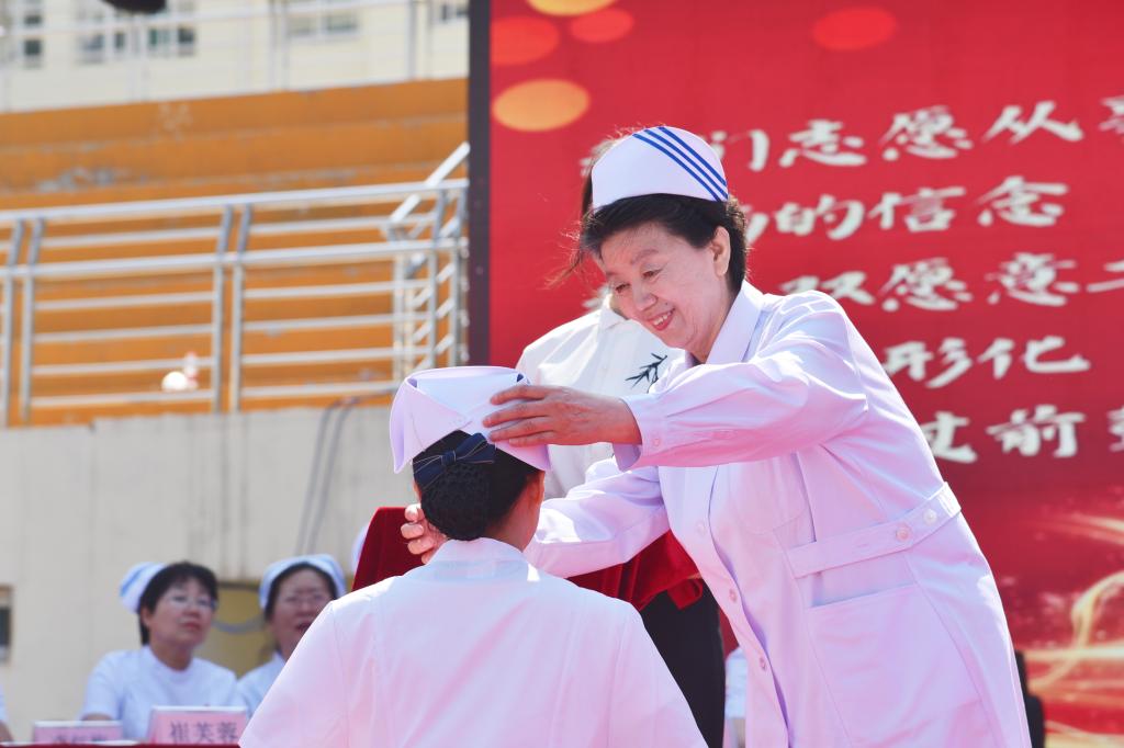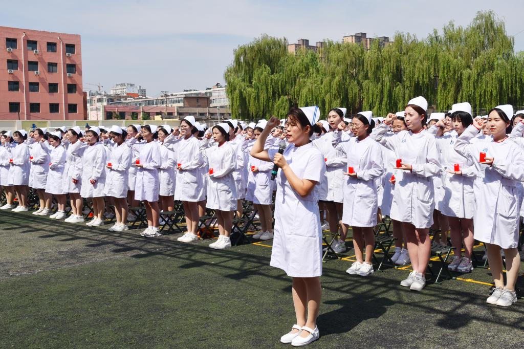 为弘扬南丁格尔精神,激励同学们继承和发扬护理事业的光荣传统,以“爱心、耐心、细心、责任心”做好护理工作,5月10日上午,由护理学系承办的我校纪念“5·12”国际护士节暨2024年护生授帽仪式在校田径场隆重举行。校党委书记闫敬来,党委副书记、院长孟小平;山西省汾阳医院党委书记郭任维;校党委副书记王伟,党委委员、纪委书记尹锡昊,党委委员、副院长李荣江,党委委员、组织统战部部长李峥和宣传部部长樊瑞晶,党委(院长)办公室主任范军军;我校原护理学系主任崔芙蓉,山西医科大学护理学院副院长、山西医科大学第二医院护理部副主任、第49届“南丁格尔奖章”获得者张颖惠,山西省肿瘤医院护理部主任牛巧红,山西省人民医院护理部教学科科长张彩云,山西省儿童医院郭晓燕,山西省汾阳医院护理部主任郭朝利;我校护理学系党政负责人、教职工及2021级1437名护生参加了仪式。党委委员、副院长李荣江主持了仪式。