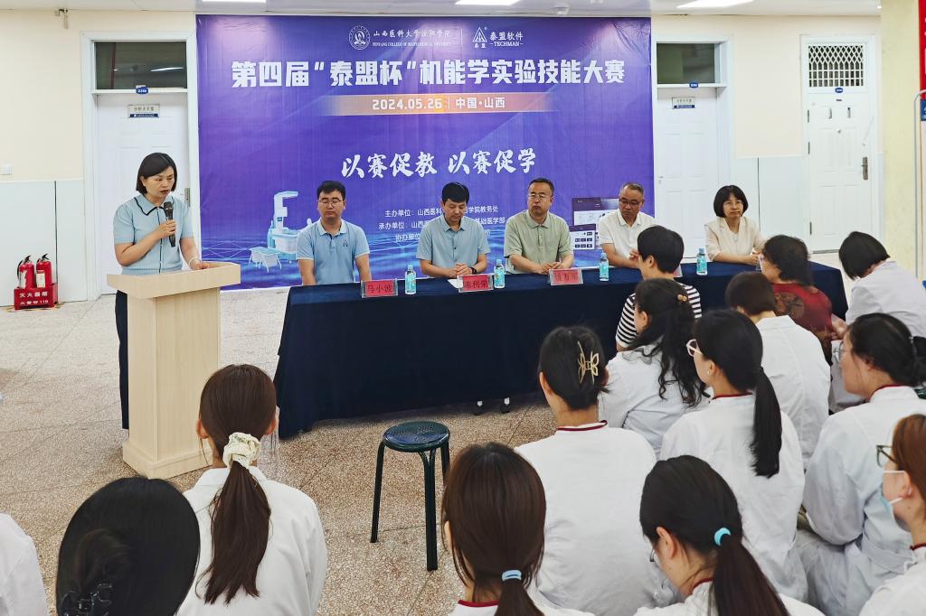为了以赛促教、以赛促学、以赛促改,培养学生动手能力,提高学生实验操作技能,5月26日,由教务处牵头、基础医学部举办的我校第四届“泰盟杯”机能学实验技能大赛决赛在诚明楼机能实验室举行。教务处处长陈利荣、基础医学部党总支书记姚万军、基础医学部副主任兰冰洁和李卫萍、成都泰盟软件有限公司华北地区市场部经理马小波出席了开幕式。