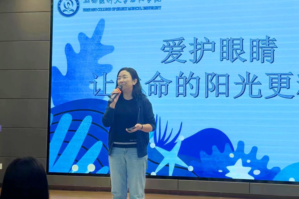 眼视光学系党总支书记岳永红感谢北门小学为我校师生提供了一个很好的实践,用生动形象的语言向同学们讲解了6月6日全国“爱眼日”的由来,并和同学们进行了交流互动。