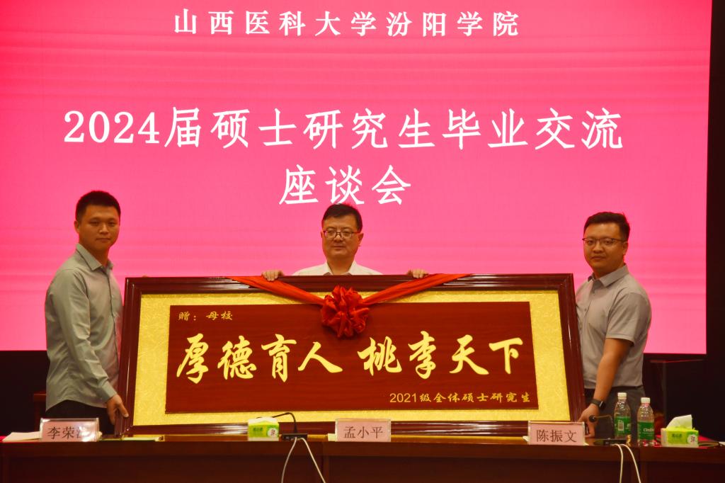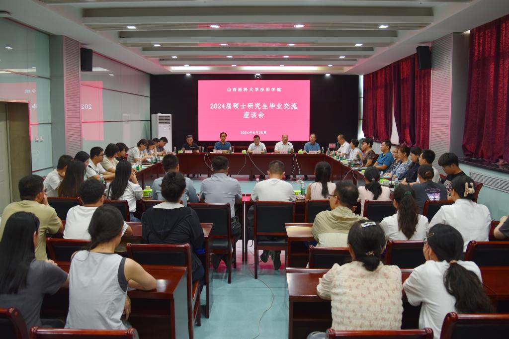 为加强交流,增进硕士毕业生对母校的感情,指导他们走好今后的人生路,我校于6月25日下午举办了2024届硕士研究生毕业交流座谈会。校党委副书记、院长孟小平,党委委员、副院长陈振文,党委委员、副院长李荣江,山西省汾阳医院副院长张耀武,校党委委员、组织部部长李峥,校党委委员、宣传部部长樊瑞晶,学生工作部(处)部(处)长常明亮,科技中心老师和部分硕士研究生导师代表,以及40余名即将踏上新征程的硕士毕业生参加了座谈会。陈振文副院长主持了座谈会。