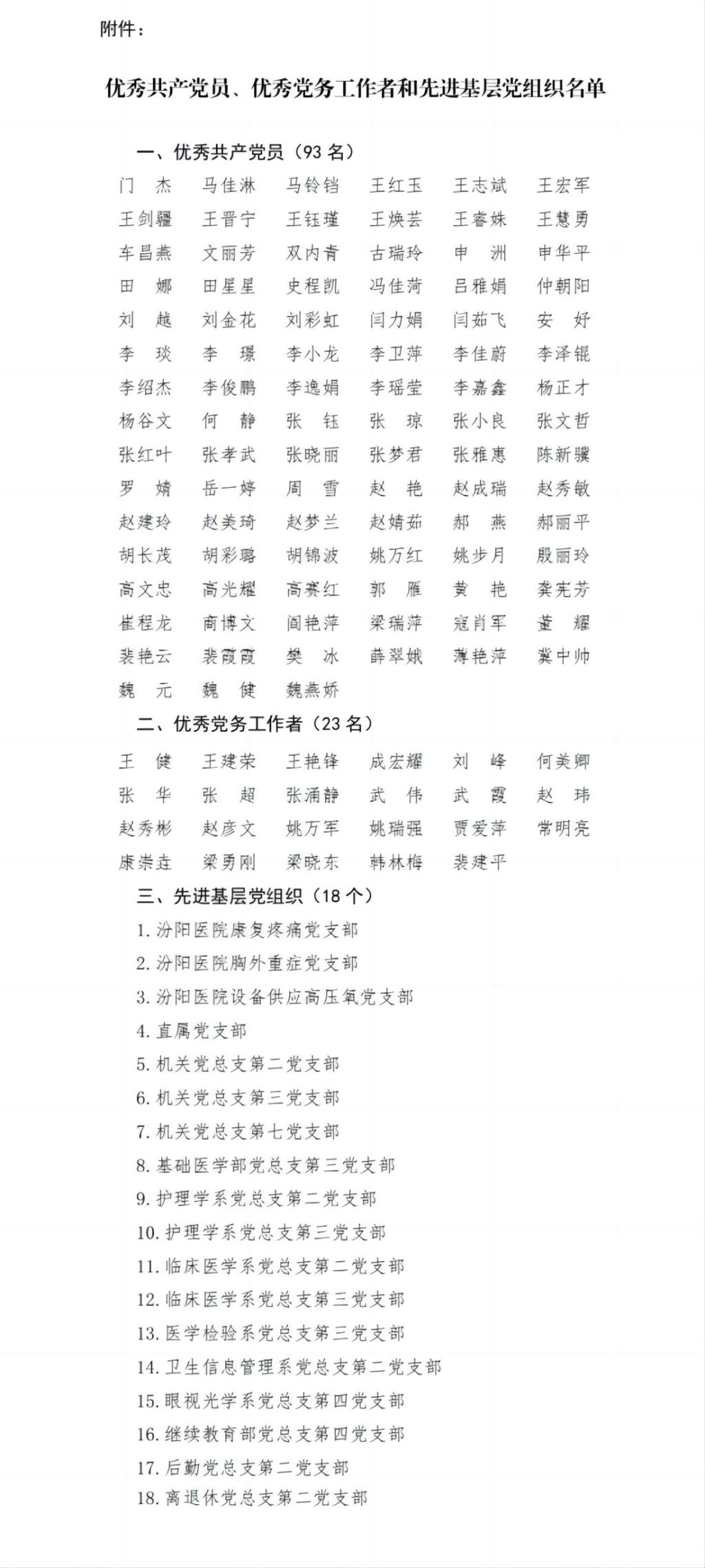 党委委员、纪委书记尹锡昊宣读了《中共山西医科大学汾阳学院委员会关于表彰优秀共产党员、优秀党务工作者和先进基层党组织的决定》。决定授予门杰等93名同志“优秀共产党员”荣誉称号,授予王健等23名同志“优秀党务工作者”荣誉称号,授予汾阳医院康复疼痛党支部等18个党组织“先进基层党组织”荣誉称号(名单附后)。
