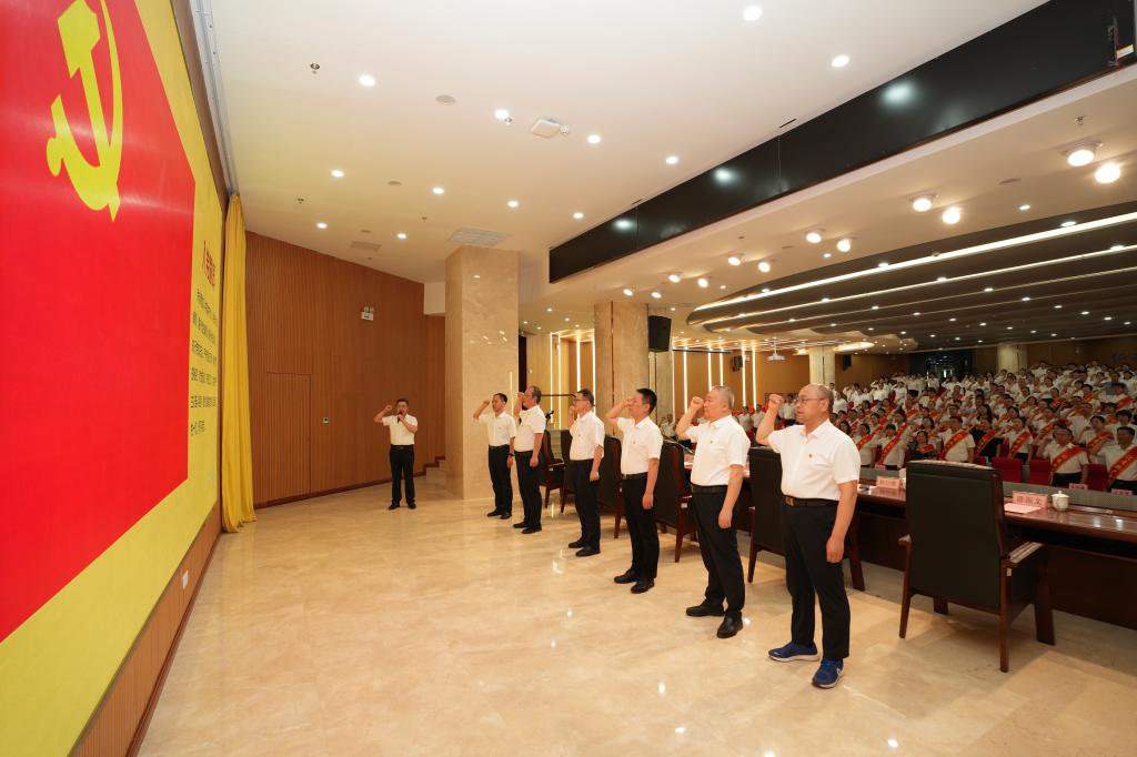 大会在庄严的国歌声中拉开帷幕,全体共产党员重温了入党誓词。