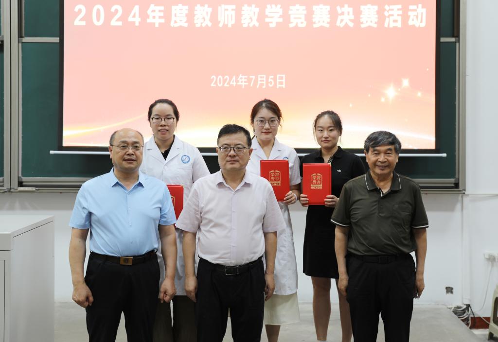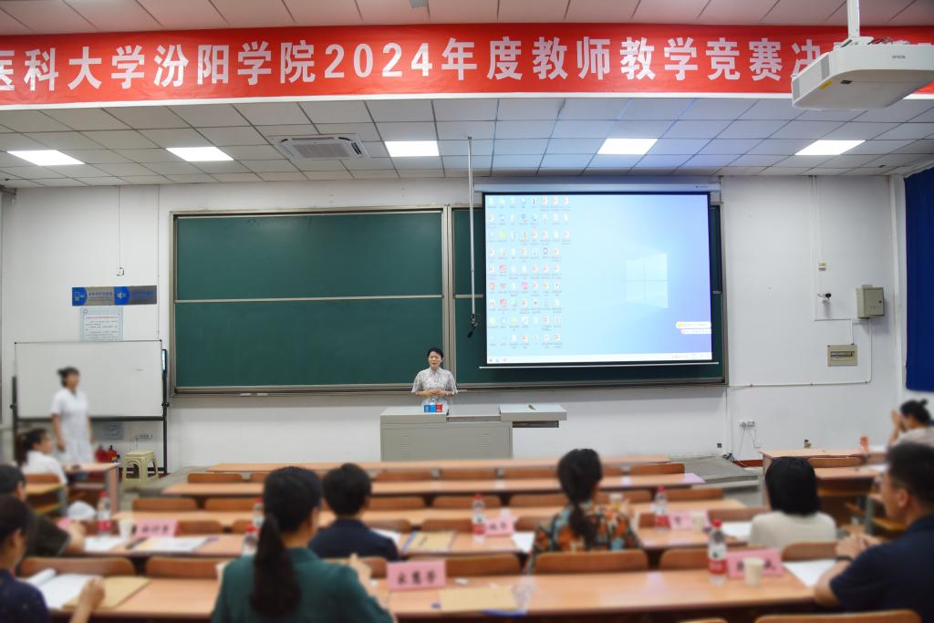 7月5日,我校2024年度教师教学竞赛决赛在聚成楼第一阶梯教室拉开帷幕。本次比赛特邀山西医科大学教学督导委员会副主任委员徐计秀教授、教务部副部长郭睿教授、原护理学院党委书记金瑞华教授、基础医学院医学寄生虫学教研室主任刘红丽副教授、人体解剖学教研室副主任宋慧芳教授,以及山西中医药大学基础医学院副院长贾璐副教授、韩诚副教授担任评委。校党委副书记、院长孟小平,党委委员、副院长陈振文,部分附属医院、教学医院院领导及其医学教育科负责人,教务处处长陈利荣,各教学系部主任出席比赛,来自附属医院、教学医院的教师代表和我校师生代表共300余人现场观摩了比赛。全国高校教师教学创新大赛一等奖获得者、护理学系副主任周雪教授主持决赛。
