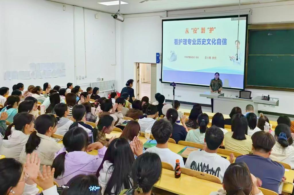 为了帮助新生了解护理学发展史,增强专业自信,激发同学们对护理专业的学习动力,9月23日上午,护理学系特邀第43届国际南丁格尔奖章获得者姜小鹰教授作《从“役”到“护”——看护理专业历史文化自信》专题讲座。本次讲座通过线上线下相结合的方式进行,护理学系党总支书记武小丽主持,护理学系主任李红梅、党总支副书记申涛、副主任申华平、分团委书记康智芳,教师、新生辅导员、学业导师以及大一新生参加。