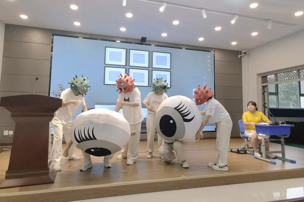 2024年6月,师生们走进汾阳市北门小学开展全国“爱眼日”主题宣传活动,以“光明的未来”为主题,通过表演情景剧,寓教于乐,让参加活动的同学们学会保持正确地用眼姿势、避免长时间用眼,养成良好的用眼习惯。活动受到了北门小学师生的广泛好评。