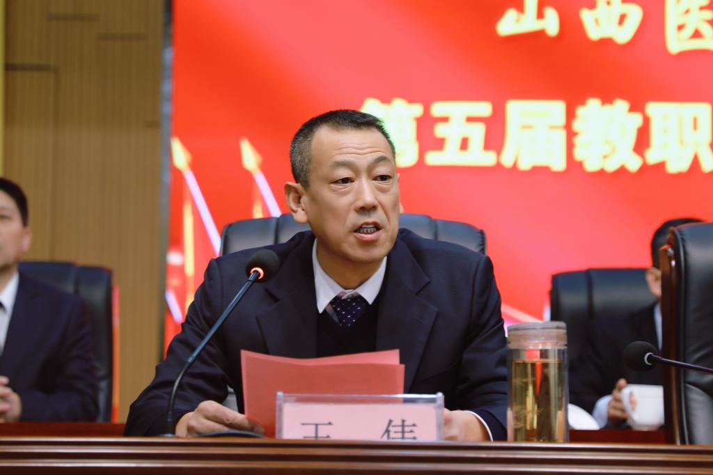 1月15日,我校第五届教职工代表大会第一次会议在图书馆学术报告厅胜利召开。校党委书记闫敬来出席会议并讲话,党委副书记、院长孟小平作学校工作报告,党委副书记王伟主持会议。党委委员、纪委书记尹锡昊,党委委员、副院长陈振文,党委委员、副院长李荣江;山西省汾阳医院党委书记郭任维,党委副书记、院长张耀武,副院长王耀勇;学校原党委委员、副院长王建世出席会议。142名正式代表、12名列席人员参加会议。