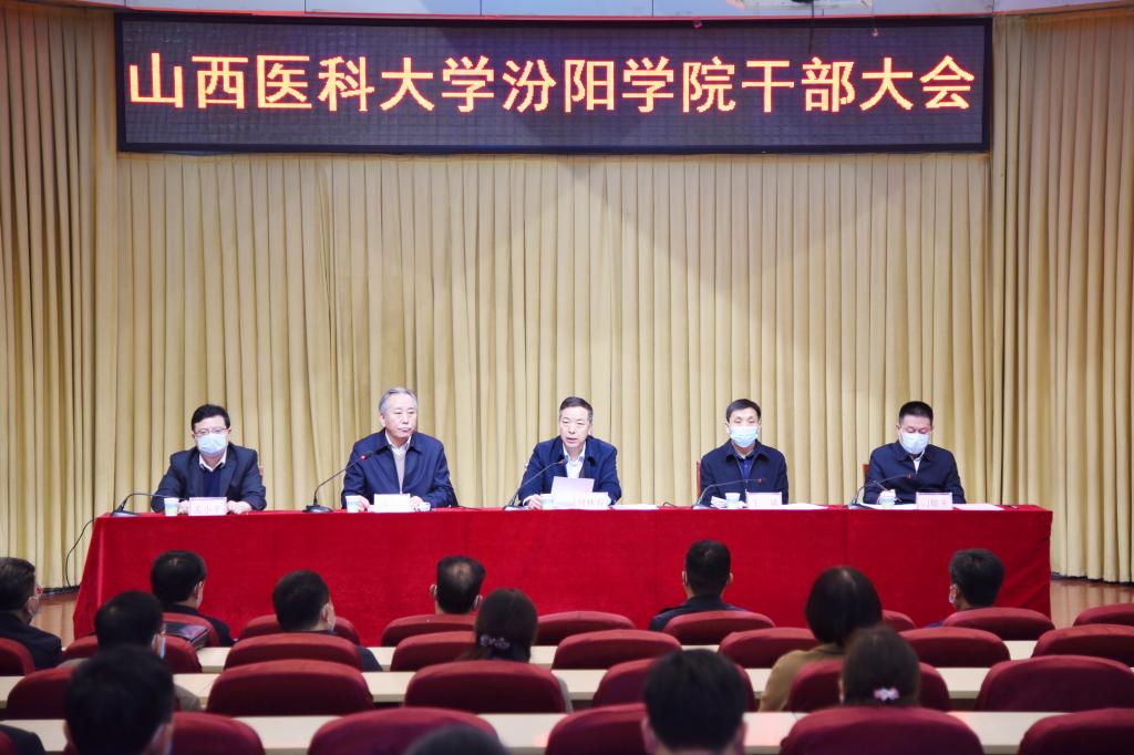 3月18日上午,我校在学术报告厅召开干部大会,宣布省委关于我校党委主要负责同志任免的决定,闫敬来同志任山西医科大学汾阳学院党委书记,薛东平同志因到龄退休不再担任山西医科大学汾阳学院党委书记职务。省委教育工委副书记、省教育厅党组成员何林有,省委组织部干部五处副处长王斌,省委教育工委组织部副部长白云飞,我校副处级及以上干部参加大会。会议由薛东平同志主持。