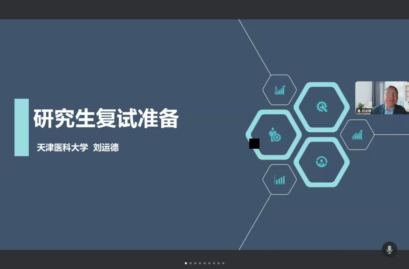 刘运德教授结合多年博士生导师经验,为同学们讲解了复试面试的各项环节和注意事项,比较了不同面试类型的侧重点和难点,指导同学们要理解面试过程的考察点;要重视调剂环节的信息搜集、志愿填报、院校沟通等关键问题,根据自身实力合理定位,鼓励同学们增强自信、展示自我。