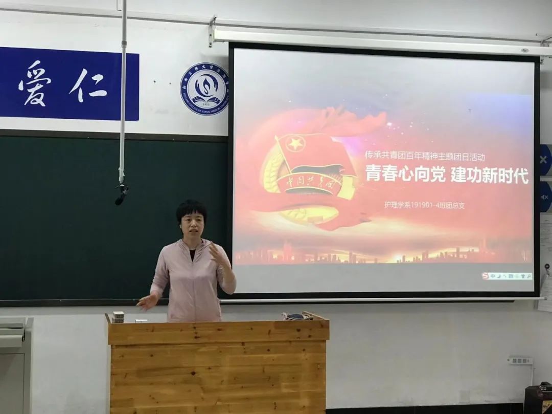 历史长河奔流,青春乐章奋进。为进一步加强对团员青年的思想政治引领,发扬“党有号召、团有行动”的光荣传统,迎接党的二十大胜利召开,护理学系191901-4班团总支于5月6日下午6时在知新楼18教组织开展了“青春心向党、建功新时代”主题团日活动,校联系领导、党务工作部副部长岳永红出席并为团员青年讲党课。