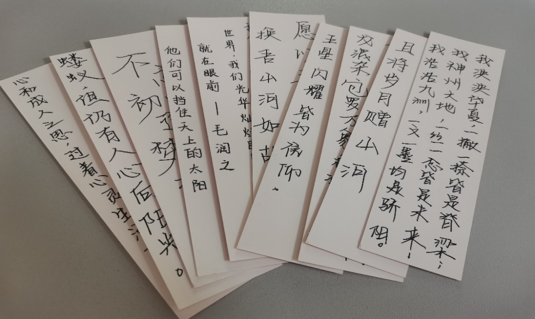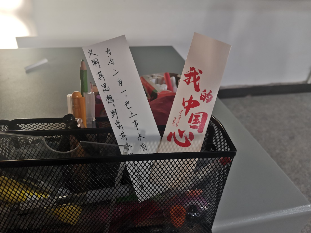 此次活动主要分三个阶段进行,第一阶段是前期的准备阶段,活动负责人提前准备好爱国爱党红色经典书签和卡片,然后在这些书签和卡片上写下了关于党的二十大精神学习的一些小问答及励志话语,旨在通过这样的趣味活动的方式进一步加深同学们对党的二十大的了解,以励志话语鼓励同学们奋发向上。第二阶段是随机藏匿书签和卡片,活动负责人将书签和卡片分别藏匿于教室不同的角落,然后下发通知至班级,鼓励同学们积极寻找,旨在让同学们在娱乐中学习党的二十大知识,感悟会议精神。第三阶段是答案的收集与后期宣传阶段,抽到问题的同学以微信消息的形式交回答案,同时把抽到的问题的图片交回用以装饰教室文化栏。