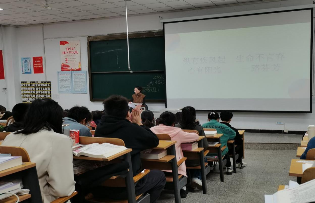 其次,赵老师以“生命的消亡”为引导,为同学们具体讲解了常见的几种校园生活安全隐患:食品安全、交通安全、防火安全、电信诈骗和病毒传播及疫情防控。从预防危险的发生到面临危险时的办法再到各种防控原则,赵老师全面地为大家讲解了各种校园安全隐患和防控措施,旨在提高同学们的安全防范意识,规范同学们的生活习惯,加强同学们的自我保护能力,培养同学们对社会、对他人、对自身负责的态度。最后赵老师以“纵有疾风起、生命不言弃,心有阳光、一路芬芳”为结束语,激励大家珍爱生命,以阳光的心态面对生活。