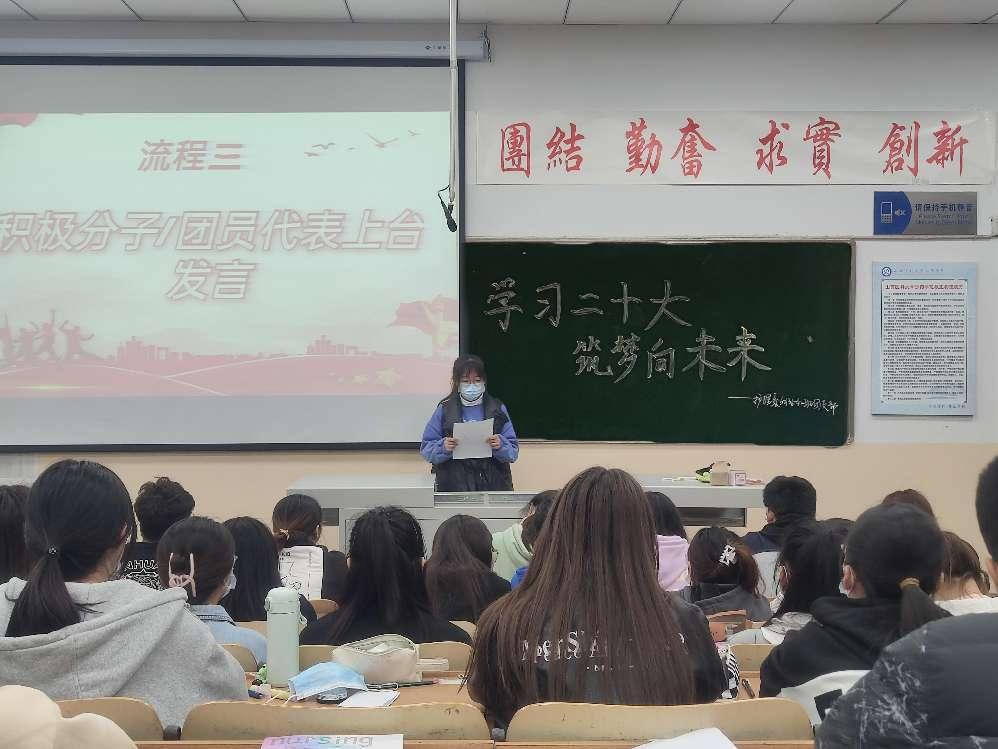 活动过程中入党积极分子上台发言。同学们铿锵有力的发言中表现出年轻一代是属于独特时代下的前行者,要在新时代征途上踔厉奋发,不忘初心砥砺前行,创造属于自己的价值,做新时代的闪光青年!