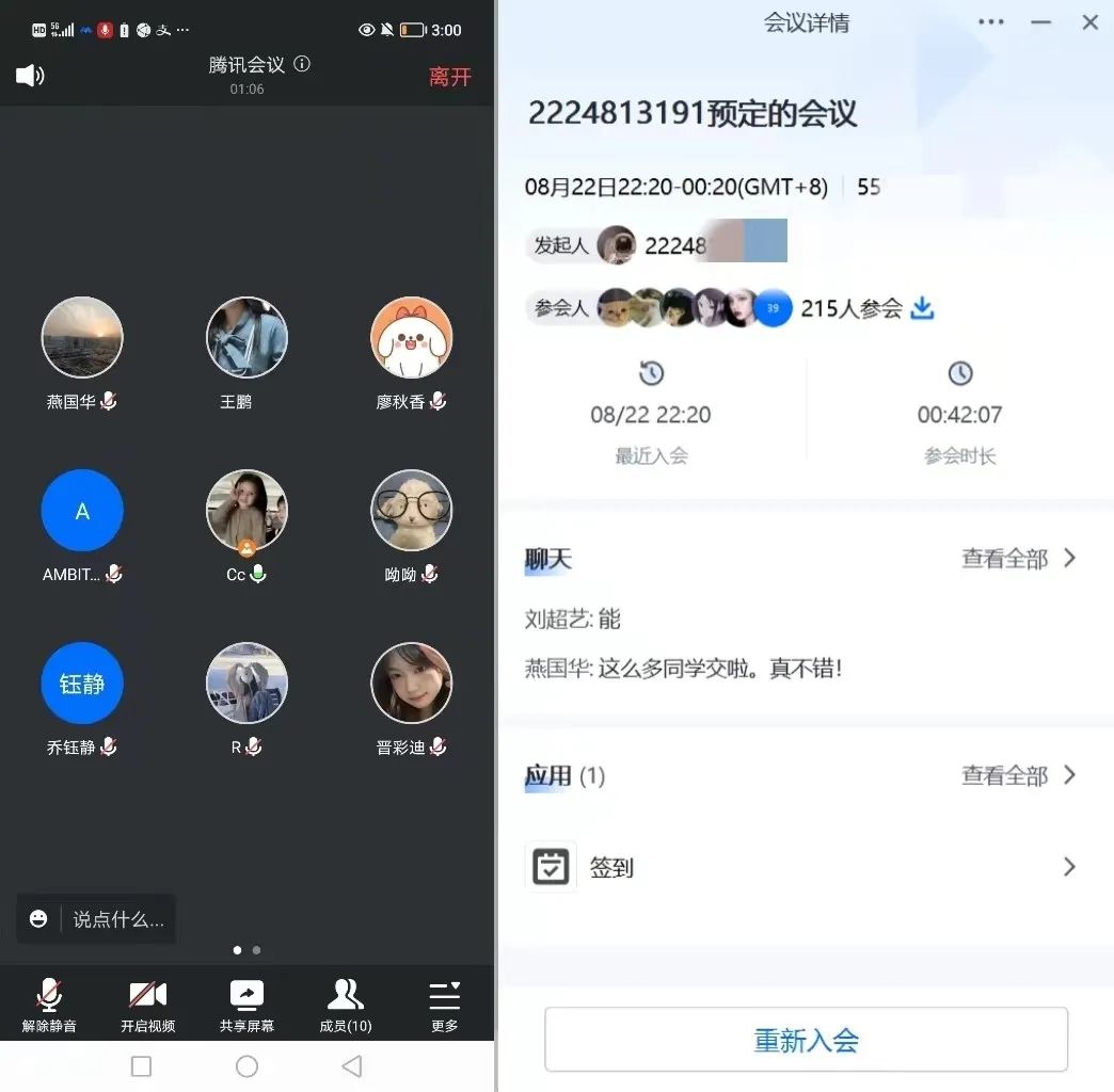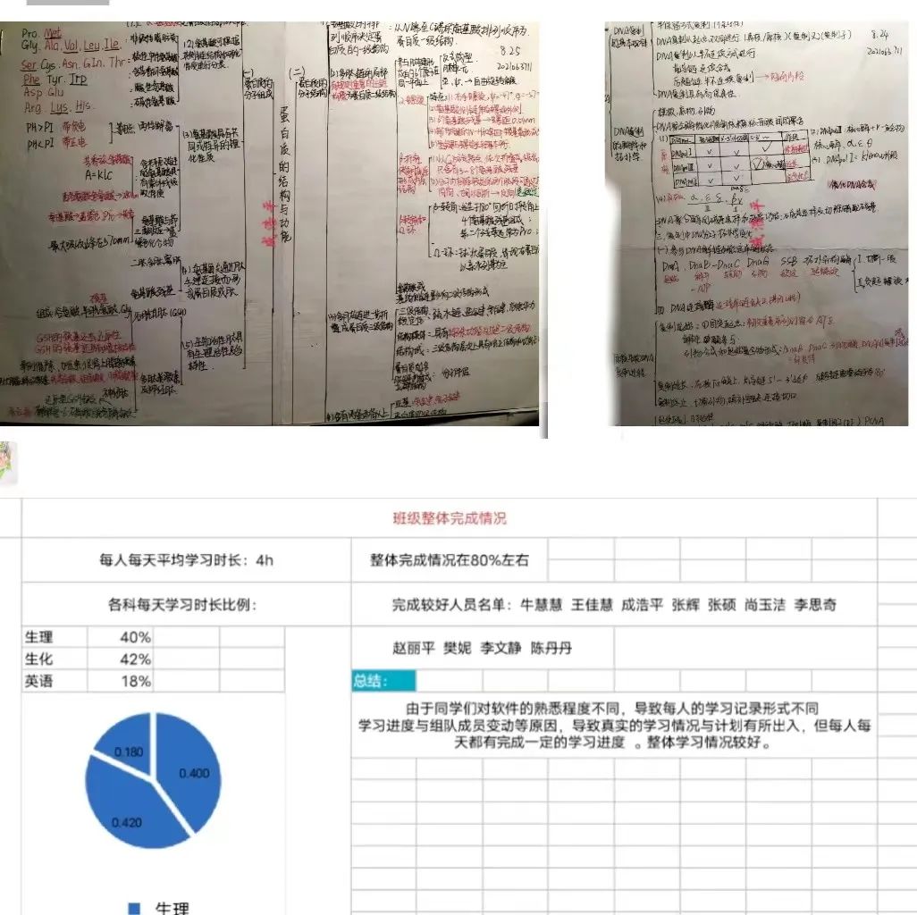 在两位老师的指导下,班干部们积极搜集网上关于线上学习的相关资料,经过充分讨论,联合老师制定了同学们居家自习的实施途径、监督标准等一系列灵活可行的方案,并对线上自习app进行了一轮轮的排查,旨在为同学们择优推荐。此外,自行召集小班学委线上开会,鼓励各学委起表率作用并督促各小班每日打卡学习。学习活动内容试行后由学委具体到各小班,并通过线上会议为每个人详细说明活动流程。