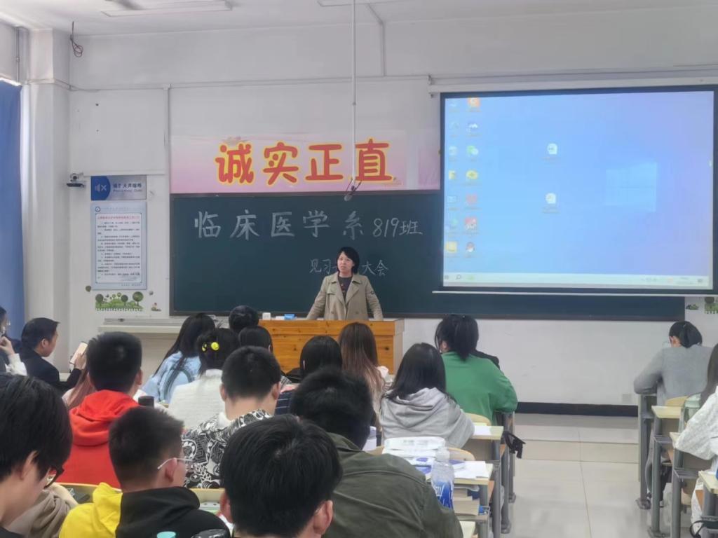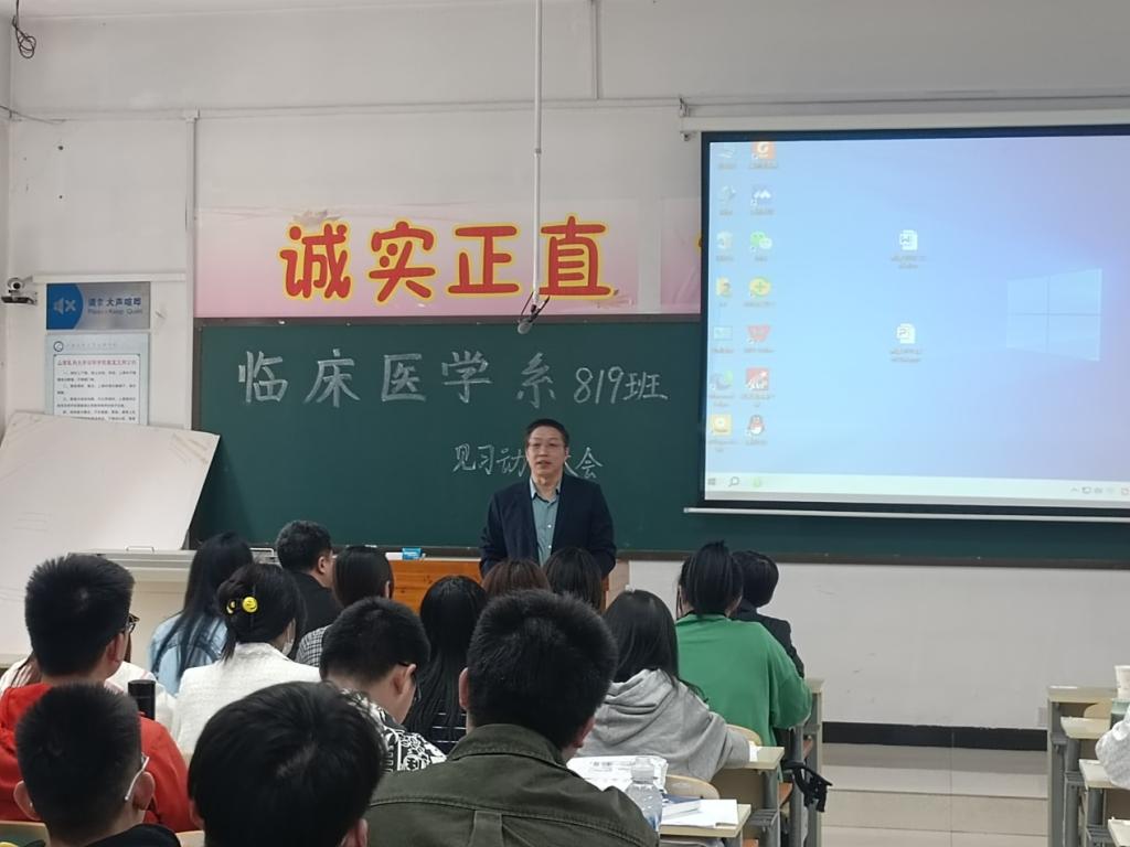 随后王艳锋副处长就学生安全问题做了强调,要求同学们应有规矩意识、风险意识、求助意识及团队意识,强调同学们在见习中思想上重视、行动上落实,希望同学们正确认识目前就业形势,切实转变观念并端正见习态度。见习中时刻注意个人形象,为学院和医院争光,同时建议医院加强学生管理。