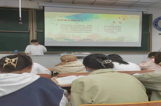 其次,梁淑芸同学向同学们介绍了国家助学贷款及国家助学贷款的意义,让同学们了解到国家助学贷款是由政府主导,金融机构向高校家庭经济困难学生提供的信用助学贷款,帮助解决在校期间的学习和生活费用,同时也让同学了解国家助学贷款是信用贷款,学生不需要办理贷款担保或抵押,但需要承诺按期还款,并承担相关法律责任。