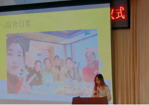 晚会伊始,主持人首先邀请5个荣获一等奖的宿舍分别进行风采展示。来自722班的2#221宿舍分享了她们和谐友爱、互帮互助的日常生活,720班的3#123宿舍展示了她们井然有序,整洁朴素的宿舍环境,721班的6#117宿舍和5#414宿舍介绍宿舍每一位成员独特的兴趣爱好。S722班的2#105宿舍讲述她们在疫情期间支援抗疫、一起并肩合作战胜疫情的不凡经历,他们团结向上、不畏艰难的精神赢得了现场观众的掌声回应。