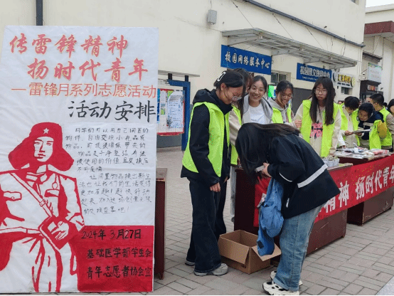 三月春风处处暖,雷锋精神代代传。2024年的3月5日是第61个“学雷锋纪念日”暨第25个“中国青年志愿者服务日”。为进一步营造“学雷锋、做好事、创文明、扬正气”的良好氛围,以实际行动传承雷锋精神,奏响“争做新时代雷锋传人”的号角,基础医学部学生会青年志愿者协会开展了“传雷锋精神,扬时代青年”雷锋月系列志愿活动。