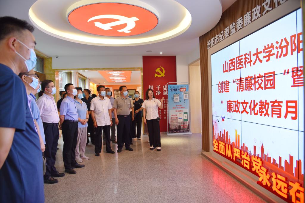 为全面落实省第十二次党代会提出的全面推进清廉山西建设的决策部署和省委教育工委、省教育厅关于全面建设清廉学校的要求,根据学校党委关于清廉学校创建和第八届“廉政文化教育月”的活动安排,6月22日下午,党委书记闫敬来,党委副书记、院长孟小平,党委副书记任云青,党委委员、纪委书记任朝生,党委委员、副院长韩宝森、陈振文及中层正职和主持工作的副职干部赴汾阳市纪委监委参观学习了廉政文化长廊。廉政文化长廊分为党建政治引领、廉政文化宣传、案例警示教育三大板块。