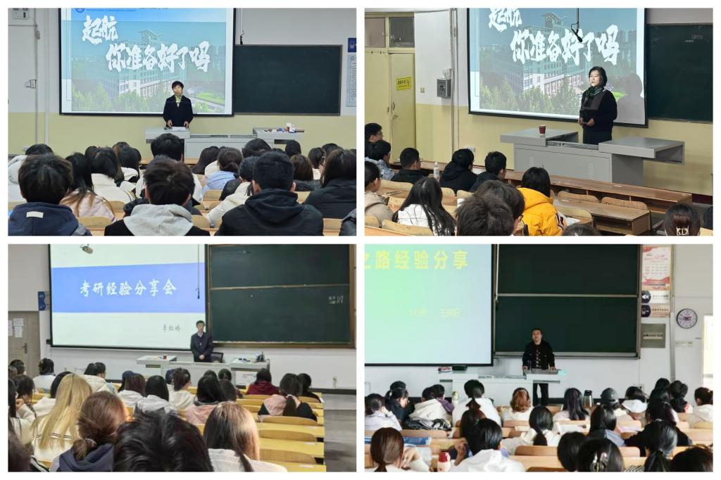讲座中,同学们还和四位老师进行了互动,老师们耐心解答了同学们关于择校、复习方法、面试技巧以及职业规划等方面的疑问。同学们纷纷表示,本次系列讲座活动对考研的流程、备考策略以及就业市场的现状和未来趋势有了更加清晰的认识,受益匪浅。