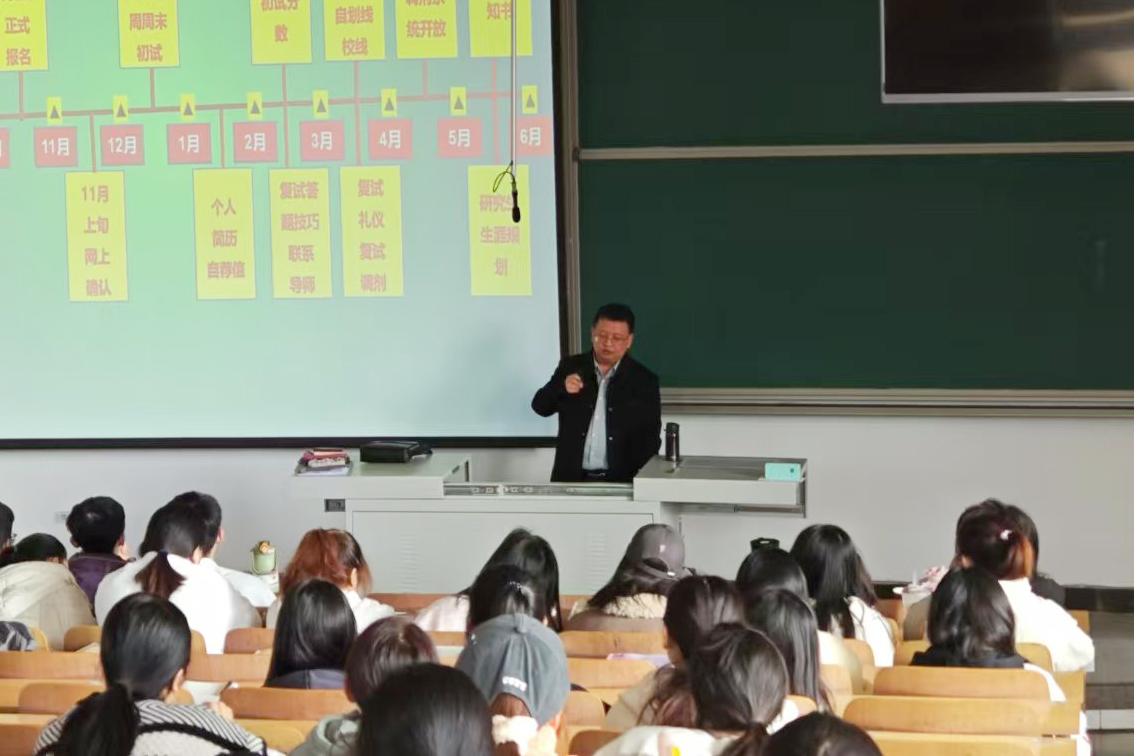 我校2024年新进临床医学博士董慧结合自身丰富的考研、科研经验,与同学们深入探讨了考研与就业的不同路径选择,讲解了学硕、专硕、博士不同学历层次在就业市场中的优势,指出了实习、科研活动、英语能力在学术和职场中的重要性和竞争力,希望同学们深入了解自己的职业兴趣,做出符合自身发展的计划和目标。