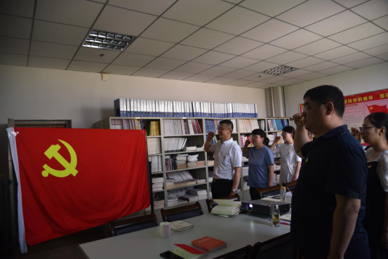 第四项活动重温入党誓词。直属党支部书记樊瑞晶带领新老党员在党旗下一起重温了入党誓词,强烈的仪式感教育使党员同志们进一步强化了党的观念,强化了党员意识,筑牢了“四个意识”。