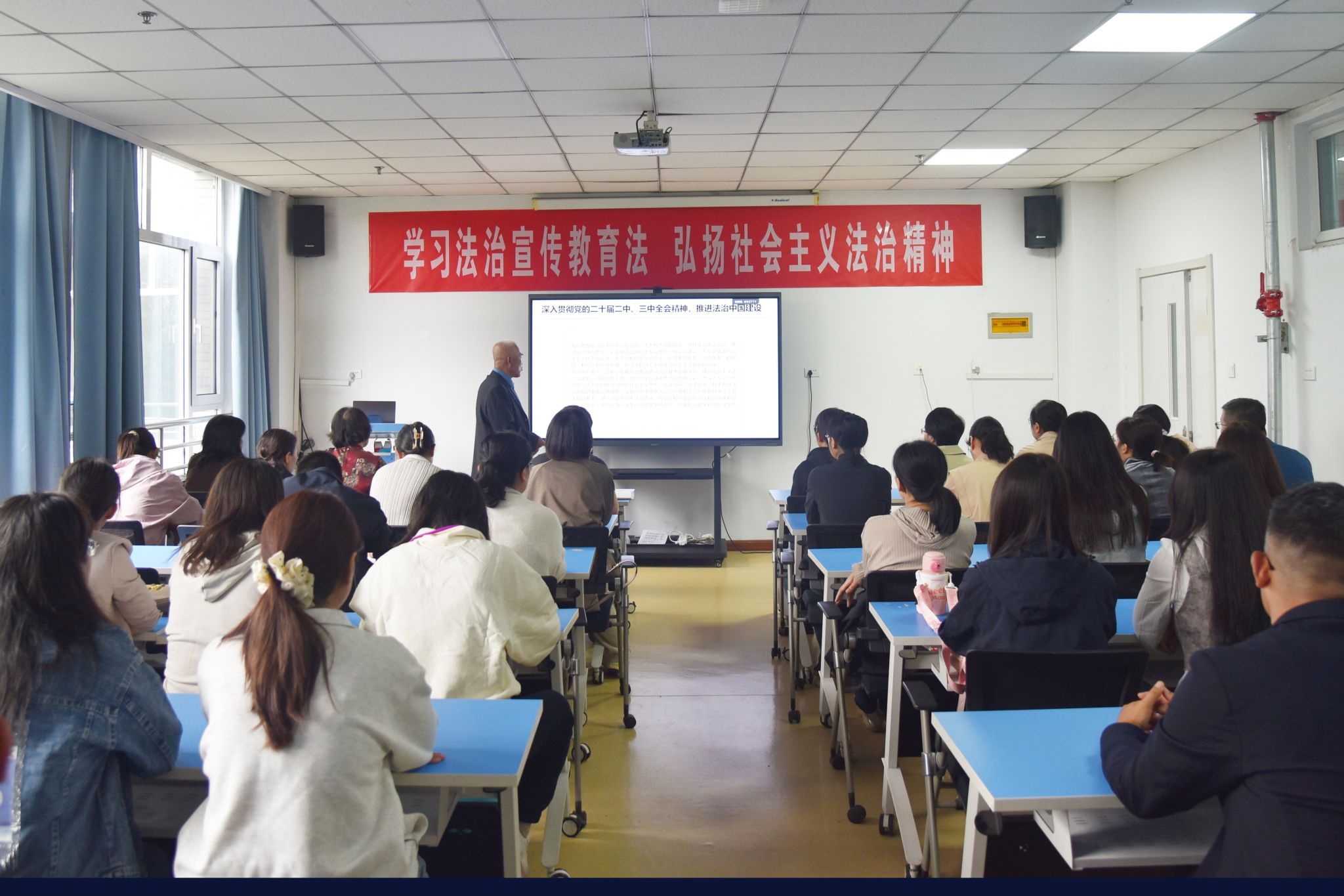 为切实增强全校师生的法治观念和法律素养,营造尊法学法守法用法的校园氛围,在法治宣传教育周期间,我校特邀校外法律专家作法治宣传教育讲座。