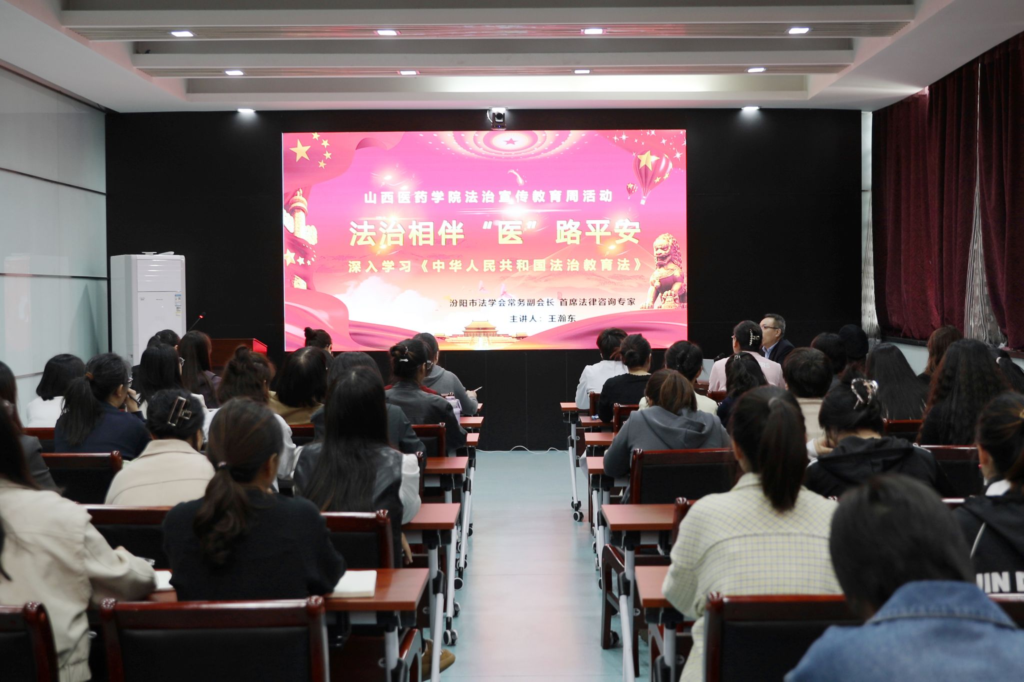 护理学系党总支、直属党支部(思政部)开展了“知法于心、守法于行”联组共学党日活动,特邀原汾阳市委政法委副书记,现任汾阳市法学会常务副会长、首席法律咨询专家王瀚东主讲,护理学系全体师生党员、思政部教师参加。王瀚东从习近平法治思想对法治宣传教育的指导意义切入,对社会主义法治精神、宪法意识和中华优秀传统法律文化进行了解读。结合大学生在校生活实际,从家庭、校园、社会三个维度梳理了必备法律知识,用真实数据和典型案例警示了违法犯罪的严重后果,并对电信诈骗、校园欺凌等热点问题进行了提醒,为大家筑牢了法治意识的“防火墙”。护理学系党总支书记武小莉总结强调,法治既是青春成长的“安全线”,更是医学学子未来职业道路的“指南针”,她希望在场师生强化学习,将法治学习融入日常,研习相关法律,明晰权利义务;筑牢底线,严守法规校规并杜绝不良行为;提升维权能力,善用法律维权,抵制违法犯罪。