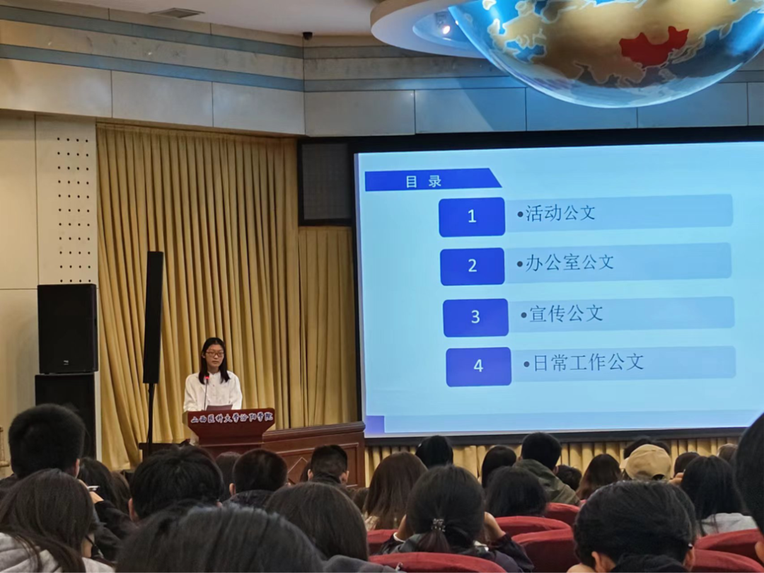 为使学生会成员掌握公文写作格式、方法及注意事项,丰富对公文书写的认识,提高工作效率,提升个人工作素养,保证工作的连续性,促进活动顺利进行。10月14日晚,由校学生会实践学习部主办、办公室、宣传部协办的公文培训在学术报告厅举行。