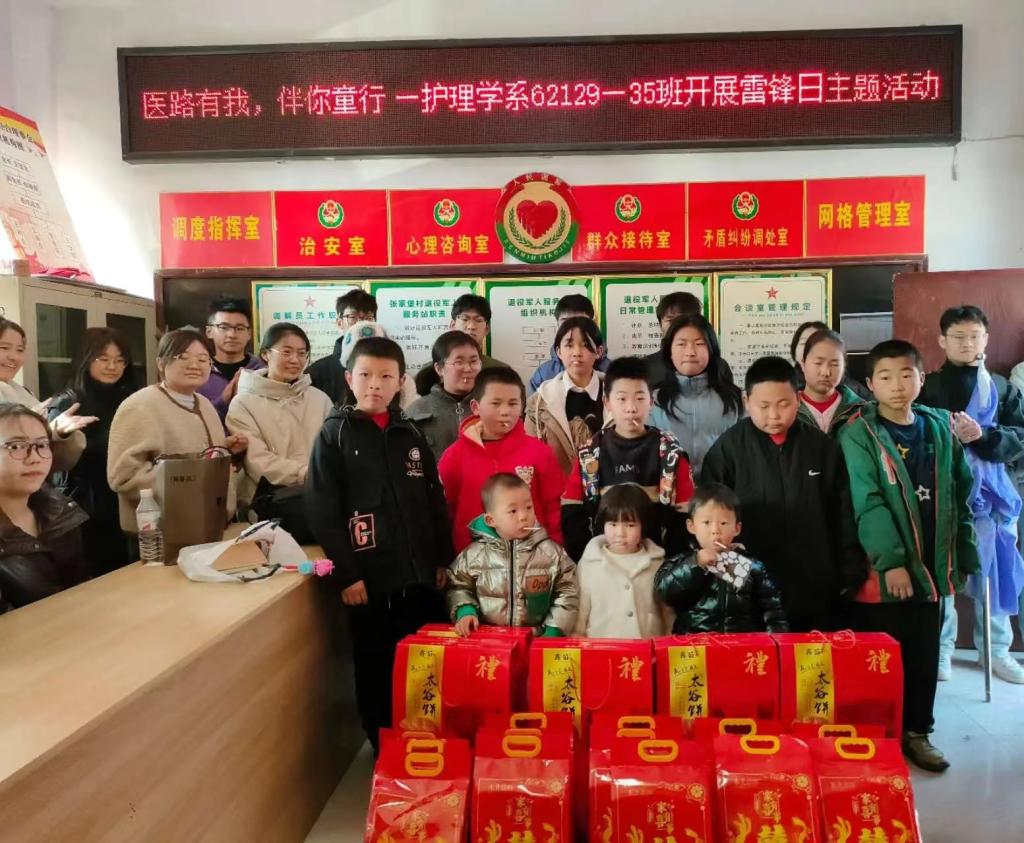 为深刻把握雷锋精神的时代内涵和实践要求,让雷锋精神在新时代绽放光芒,3月3日,我校护理学系62129-35班开展“雷锋日”主题活动,在大班宣传委员郭学军的带领下,同学们前往汾阳市栗家庄镇张家堡村,为当地高龄老人与留守儿童送去春日温暖,以实际行动诠释雷锋精神。