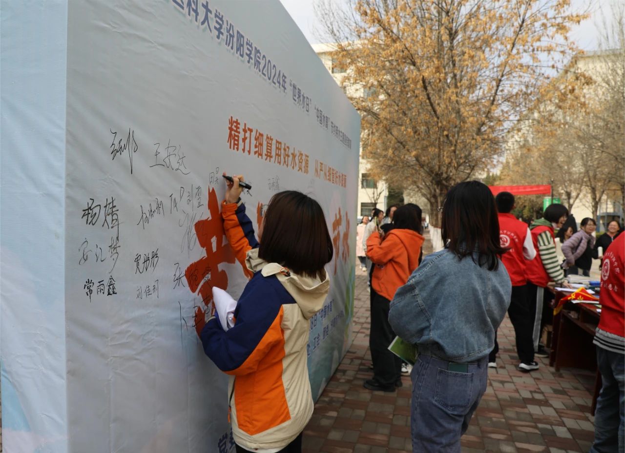 活动现场,工作人员和志愿者设置主题宣传展板、发放节水宣传资料,向过往师生讲解节约用水、水法规等方面知识,组织大家开展主题签名、知识问答等活动,引导广大师生增强节水意识,树立节水观念,做节约用水的倡导者、践行者。