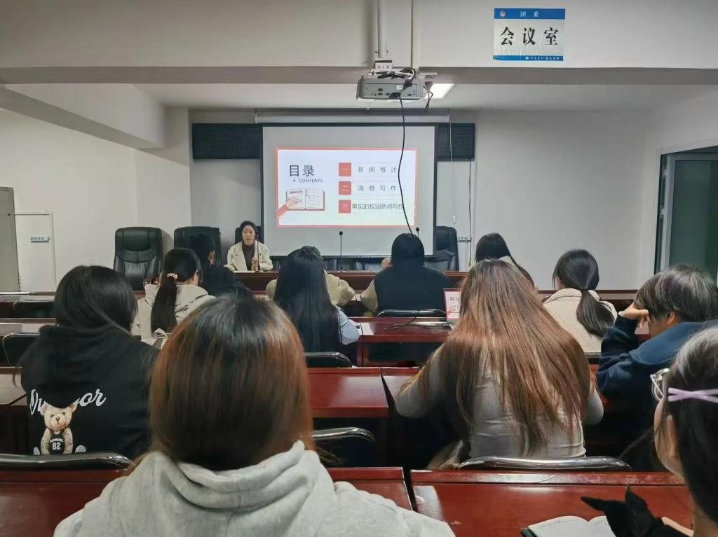 为进一步提高社团成员的新闻素养和写作水平,提升宣传能力,11月14日晚,校记者站在敦学楼学生会二层会议室举办了新闻写作专题培训,指导教师刘慧姣主讲,记者站全体成员参加了培训。