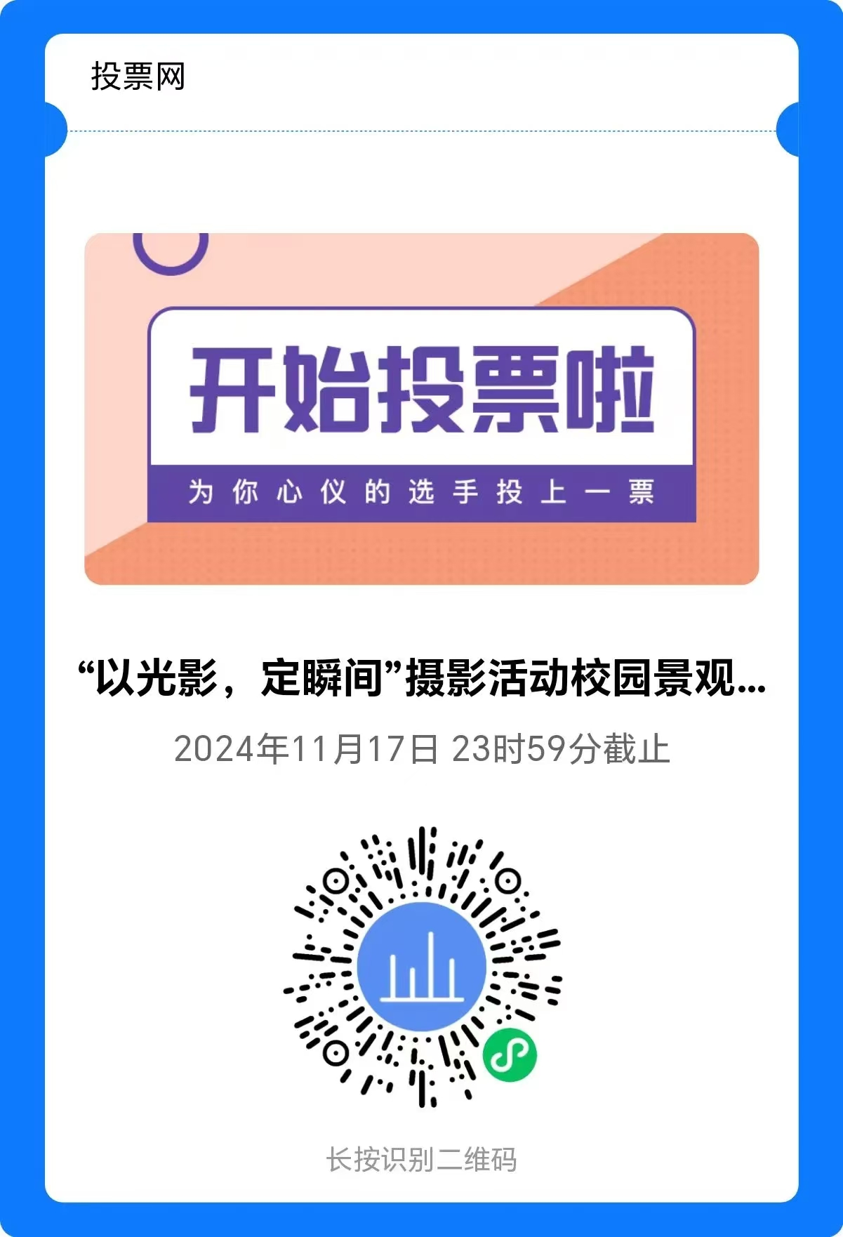 11月14日—11月17日,面向全体汾院学子征集“校园景观”、“运动风采”两个类别的摄影作品,参赛者需通过小程序报送作品。每位选手仅可参与一个类别的作品征集,完成摄影作品后提交在小程序相应主题赛道上,提交作品后投票环节开始,每人提交一张参赛作品,配文字说明,字数不限。作品评分由线上大众评选团(即投票)评比占总得分百分之五十,再由线下评委评选团打分评比占总得分百分之五十,最终合计得分将QQ群内公示评选结果。(作品要求:必须为原创,格式为JPEG或PNG,分辨率不低于300dpi,单张照片大小不超过10MB);