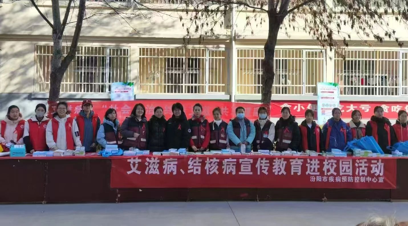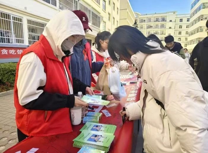 为进一步推动艾滋病防治工作有效落实,增强学生防范意识,汾阳市疾控中心、汾阳医院、后勤保障处、校医室和校学生会志工部于11月29日在风味餐厅门口联合开展主题宣教活动。