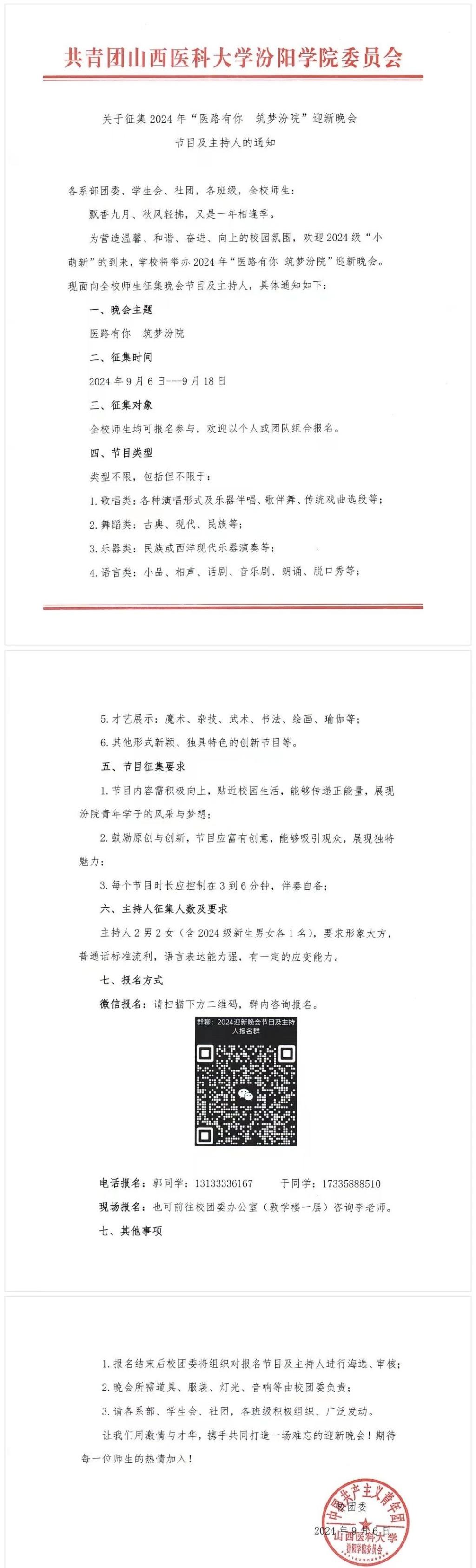 关于征集2024年“医路有你 筑梦汾院 ”迎新晚会节目及主持人的通知
