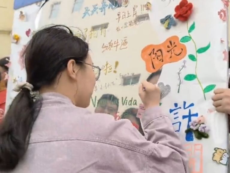 独具匠心的“夸夸镜”吸引了不少同学驻足拍照打卡,鼓励来往的同学们大胆写下对自己的夸赞以及美好祝愿。一句句内心深处的夸赞,不仅是对自己的肯定,也感染着周围的每一个人,充满了正能量!