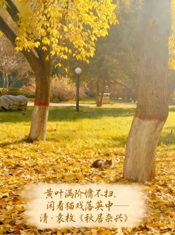 落叶是秋天寄来的最后一封信。梧桐大片地泛黄,银杏悄悄镶上了金边,黄叶慵懒地躺在石阶上,小猫轻巧地踏过,像走过一段柔软的光阴,这些被定格的瞬间,成了我们心底最灵动的注脚。