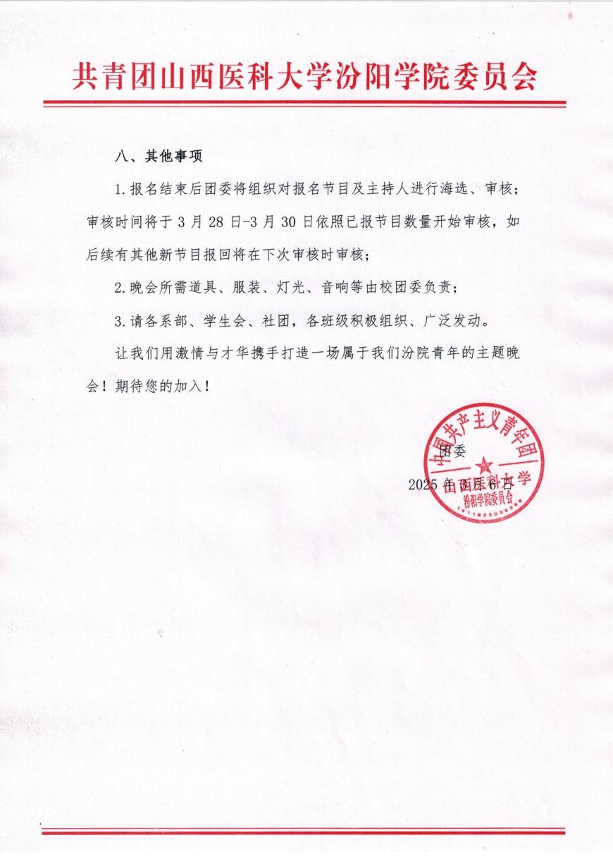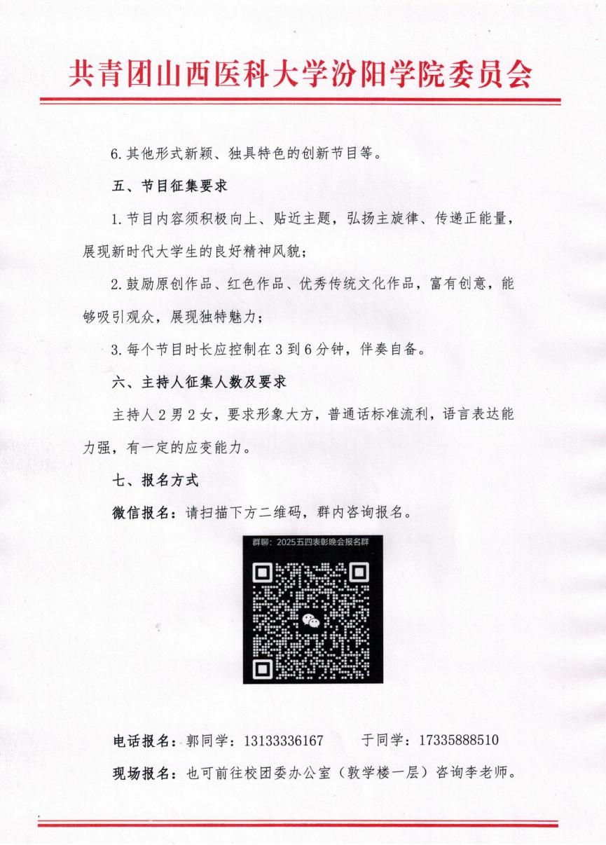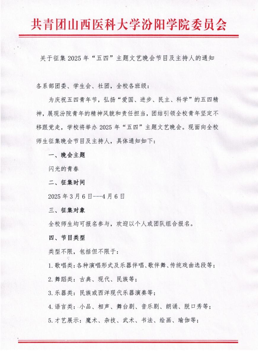 关于征集2025年”五四“主题文艺晚会节目及主持人的通知