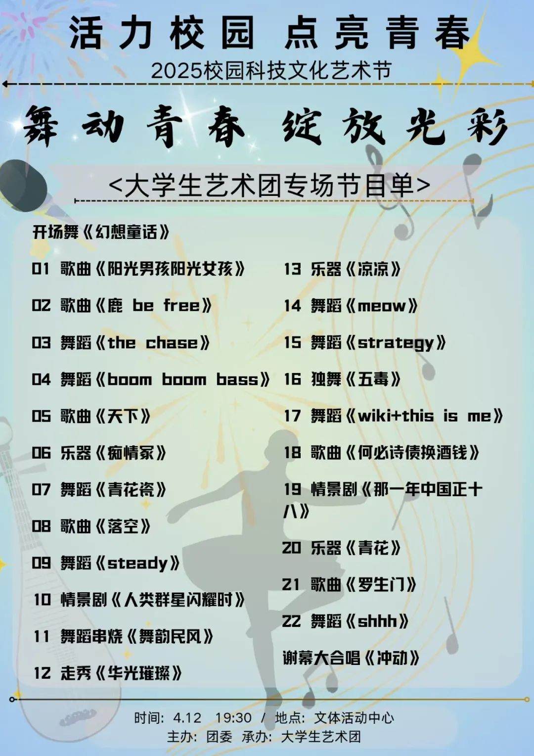 “舞动青春 绽放光彩”大学生艺术团专场节目单