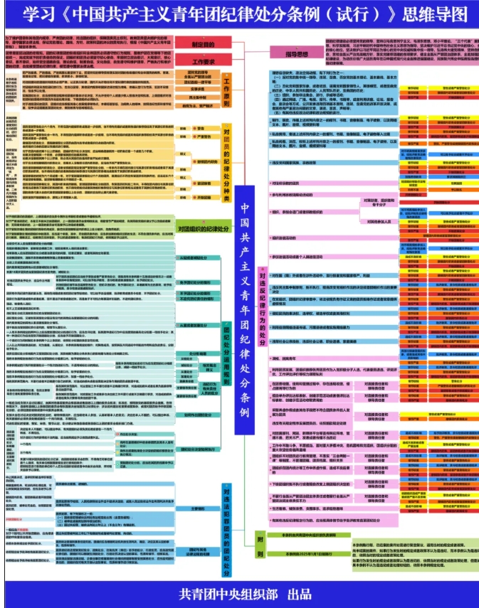 共青团十九届三中全会审议修订的《中国共产主义青年团纪律处分条例(试行)》将于2025年1月1日起施行。 请广大团员团干部收好这份学习思维导图,认真学习团章团规团纪,养成纪律自觉,争做严格遵规守纪的模范!