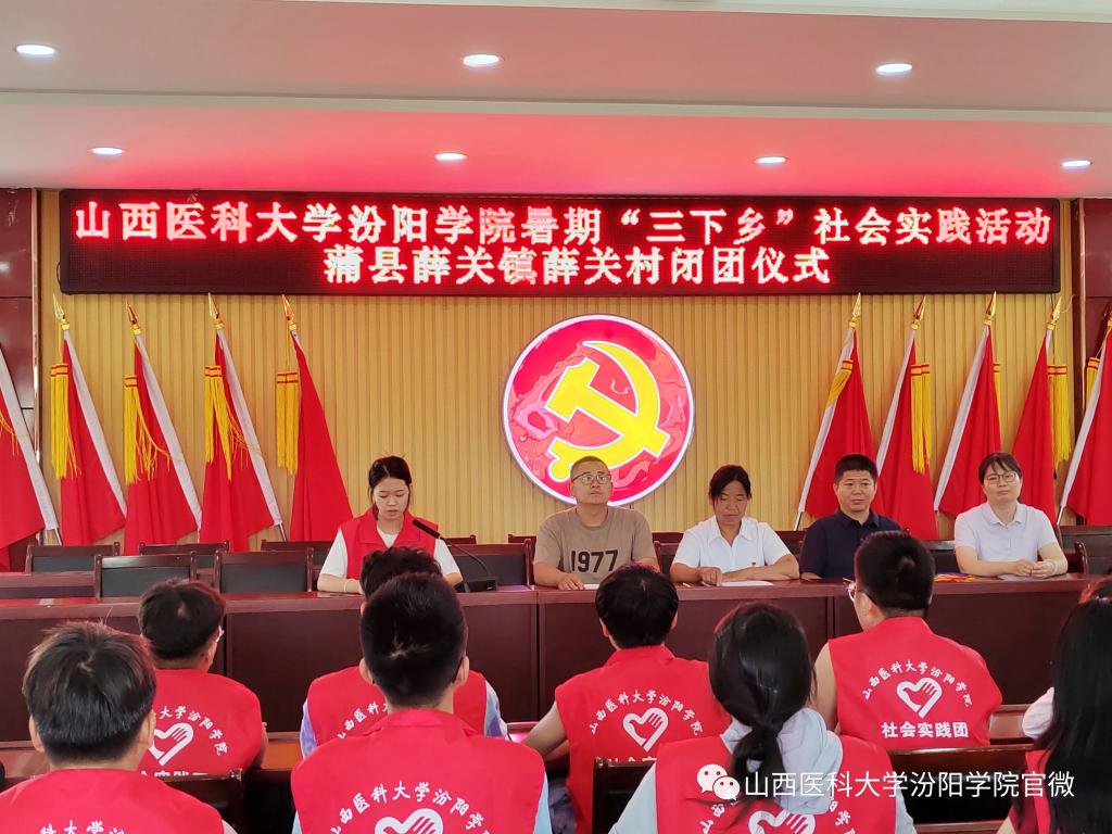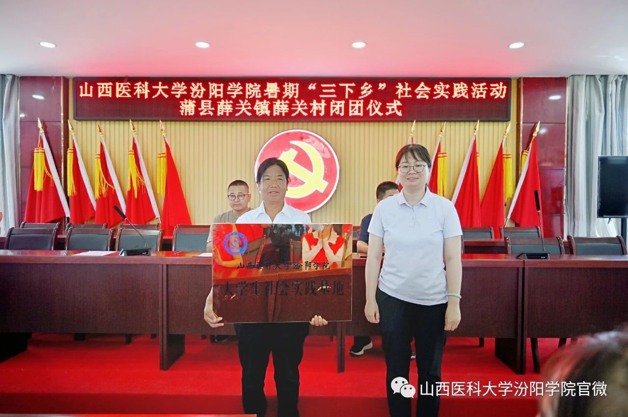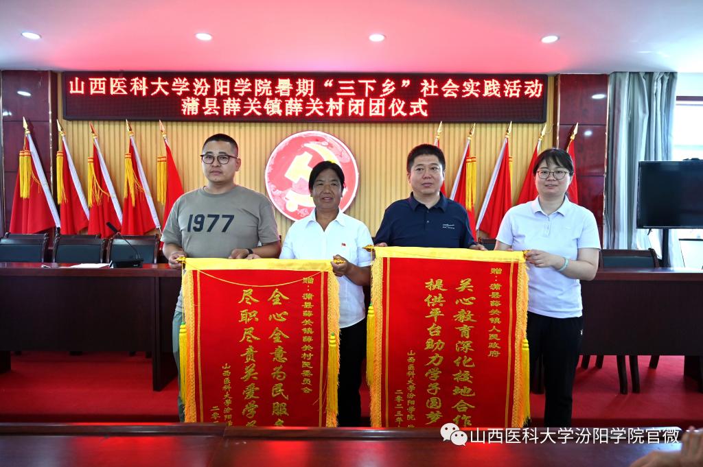 7月9日上午,实践队师生在村委会议室举行了闭团仪式。薛关镇党委书记孔令峰、薛关村党支部书记刘反翠分别进行讲话,指导老师冀中帅进行了总结发言。校村互赠锦旗,领导和老师们还为同学们颁发了荣誉证书。为加强校地合作,学校为村委颁发了“社会实践基地”的牌匾。为期四天的“三下乡”社会实践活动丰富多彩,同学们领略了劳模风采、学到了实践知识、懂得了关爱群众、传承了红色基因,践行了“请党放心、强国有我”的青春誓言,在全面建设社会主义现代化国家的火热征程上谱写了青春华章。