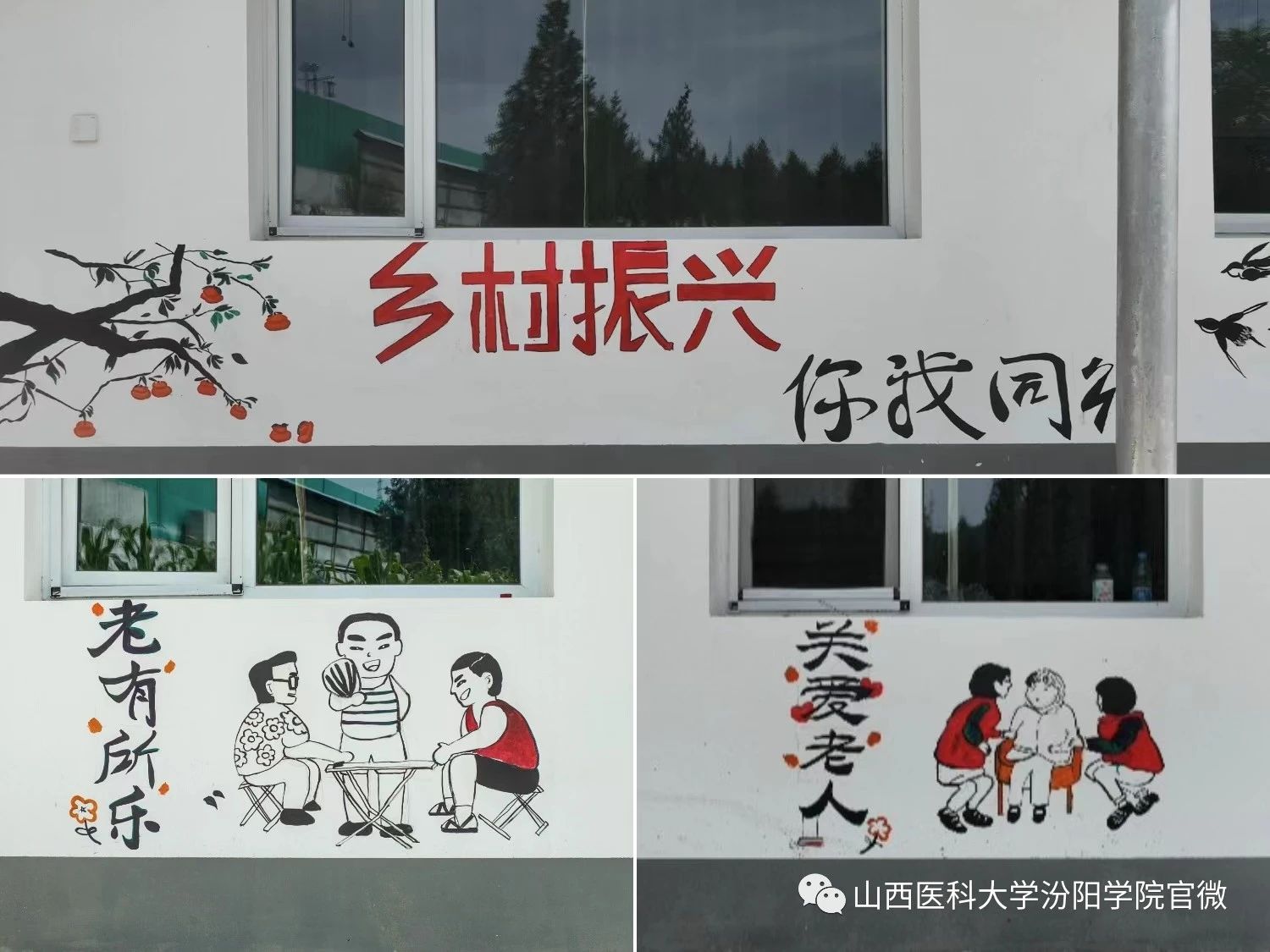 7月8日下午,实践队部分成员在薛关村养老中心内进行了乡村振兴和养老敬老为主题的墙面绘画涂鸦。队员们用一笔一画勾勒出了新青年热爱乡村、助力乡村振兴的美好画面。晚上,队员们自编自导自演,在村委广场举办了一场消夏文艺晚会。薛关村村委还特意邀蒲剧爱好者刘秋芳大姐表演了经典蒲剧《麟骨床•采花》,队员们表演了舞蹈、合唱、诗歌朗诵、小品、广场舞等节目,中间穿插了医学知识问答。大家充分发挥自身特长,为村民们带来了一场视听盛宴,开启共建文明乡村的新气象。